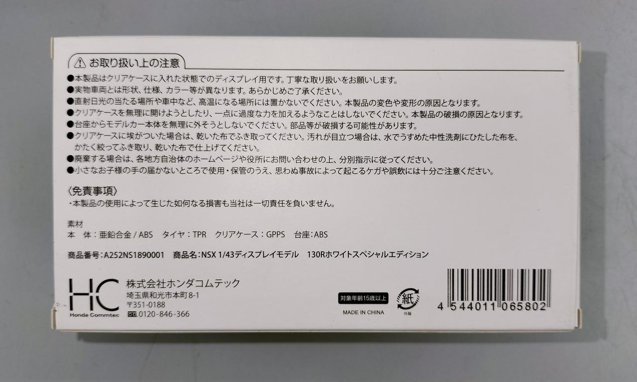 1/43 NSX 130Rホワイトスペシャルエディション