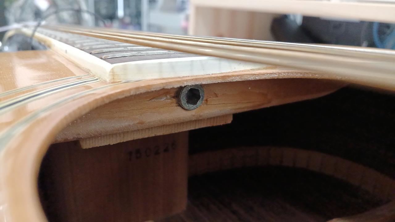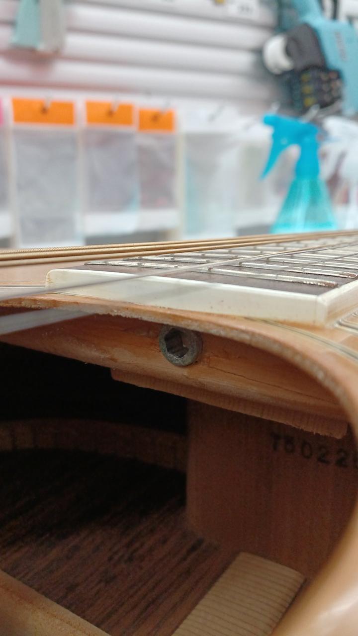 ※トラスロッドナット付近の接ぎ木にクラックがあった為、目止め修正を実施しました。 |