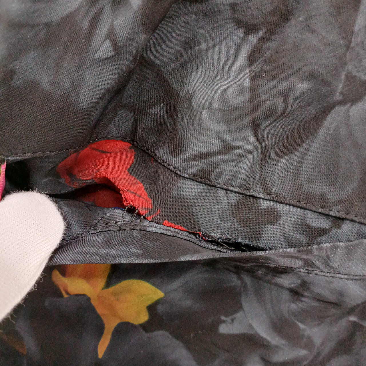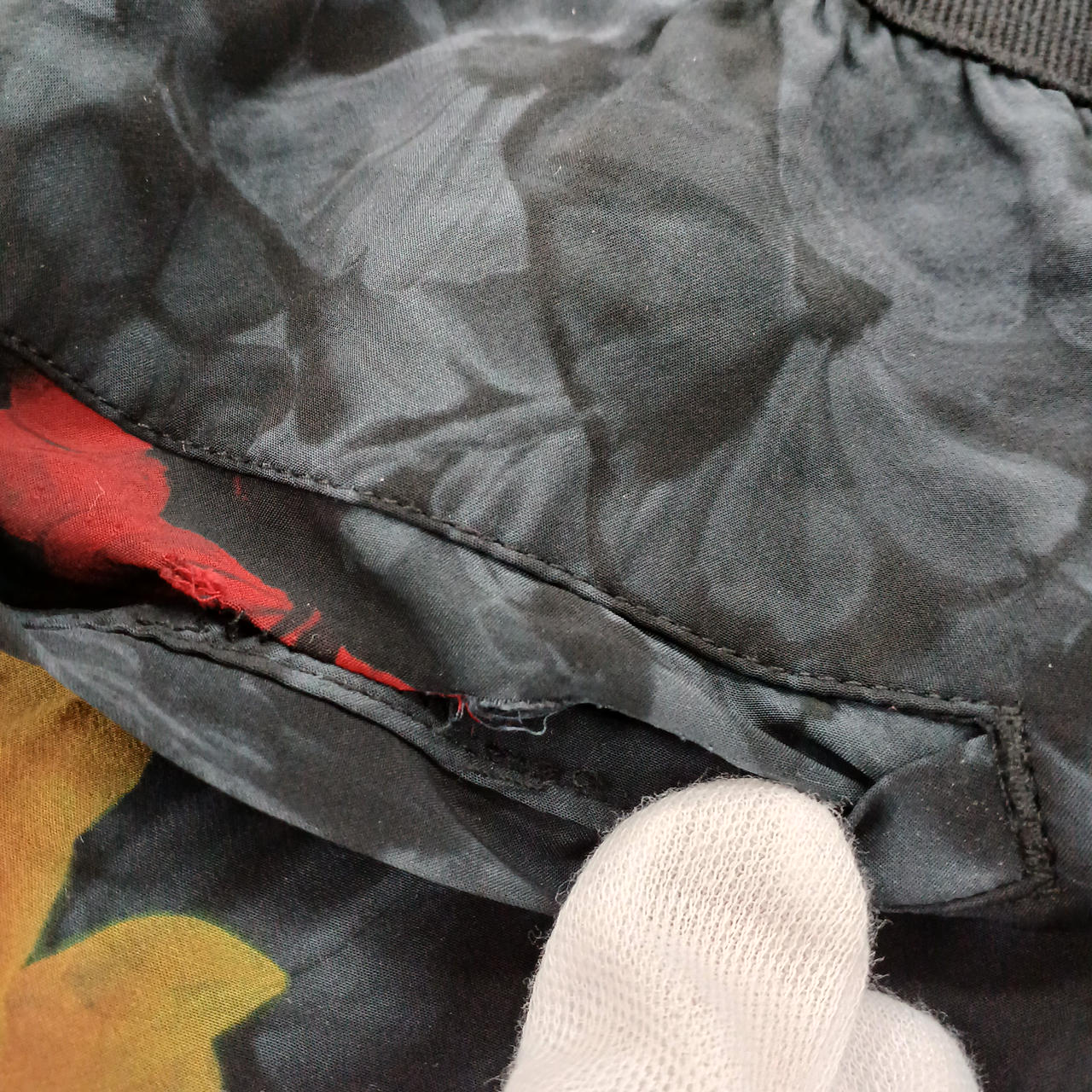 後ろのポケット部分にあながあります。 |