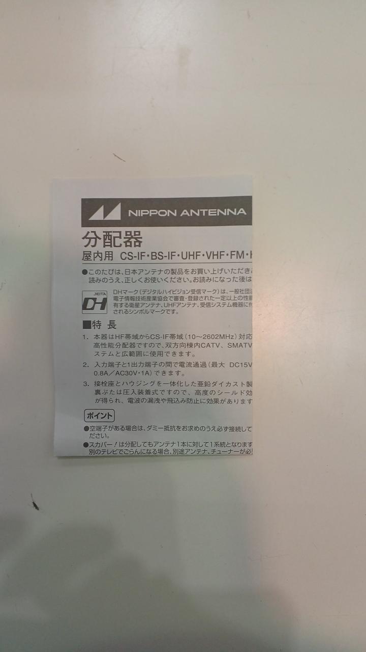 アンテナ4分配器 D4W(10)の10個セットとなります。 |