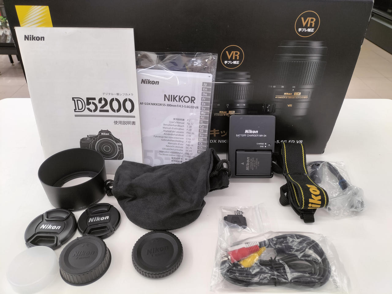 化粧箱、説明書、充電器、バッテリー、ボディキャップ、レンズキャップ(フロント・リア)、アイピースキャップ、ストラップ、USBケーブル、AVケーブル、フード、望遠レンズ用ポーチ |