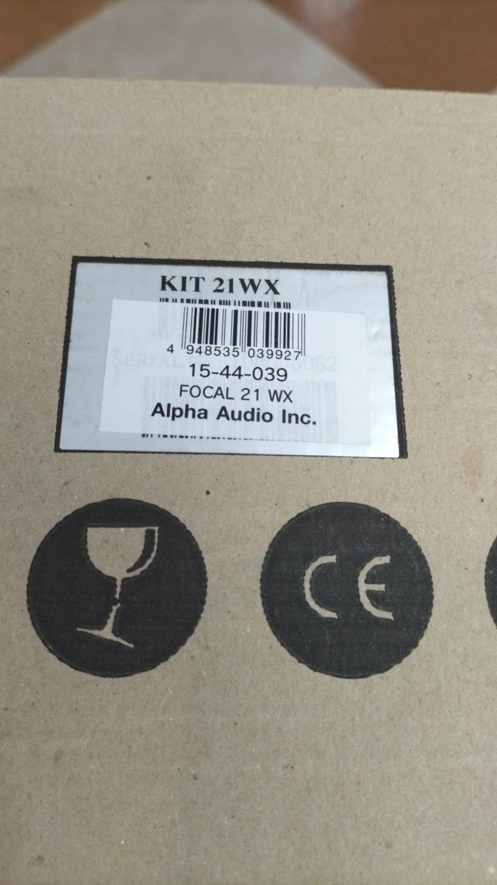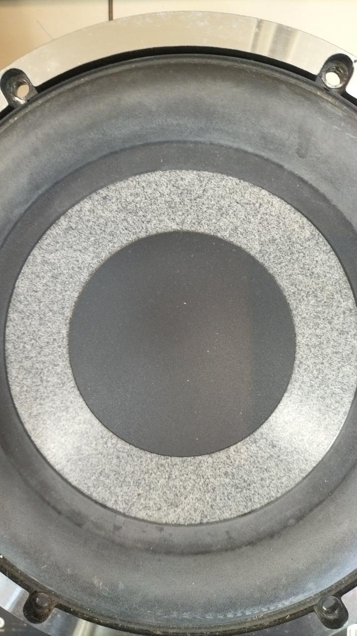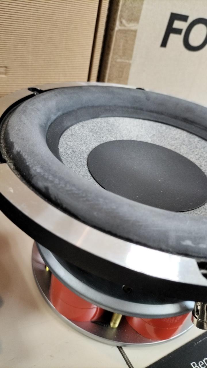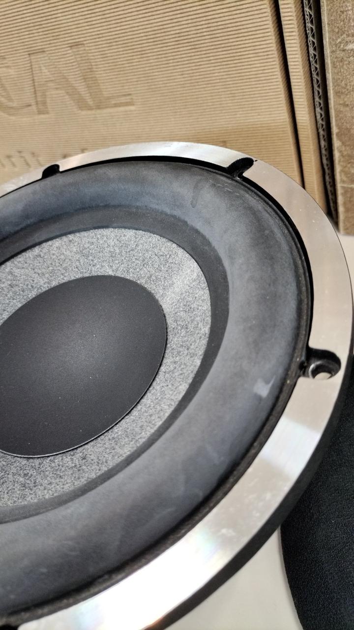 外箱、サランネット付属。※ウーファーのエッジが白っぽくなっています。 |
