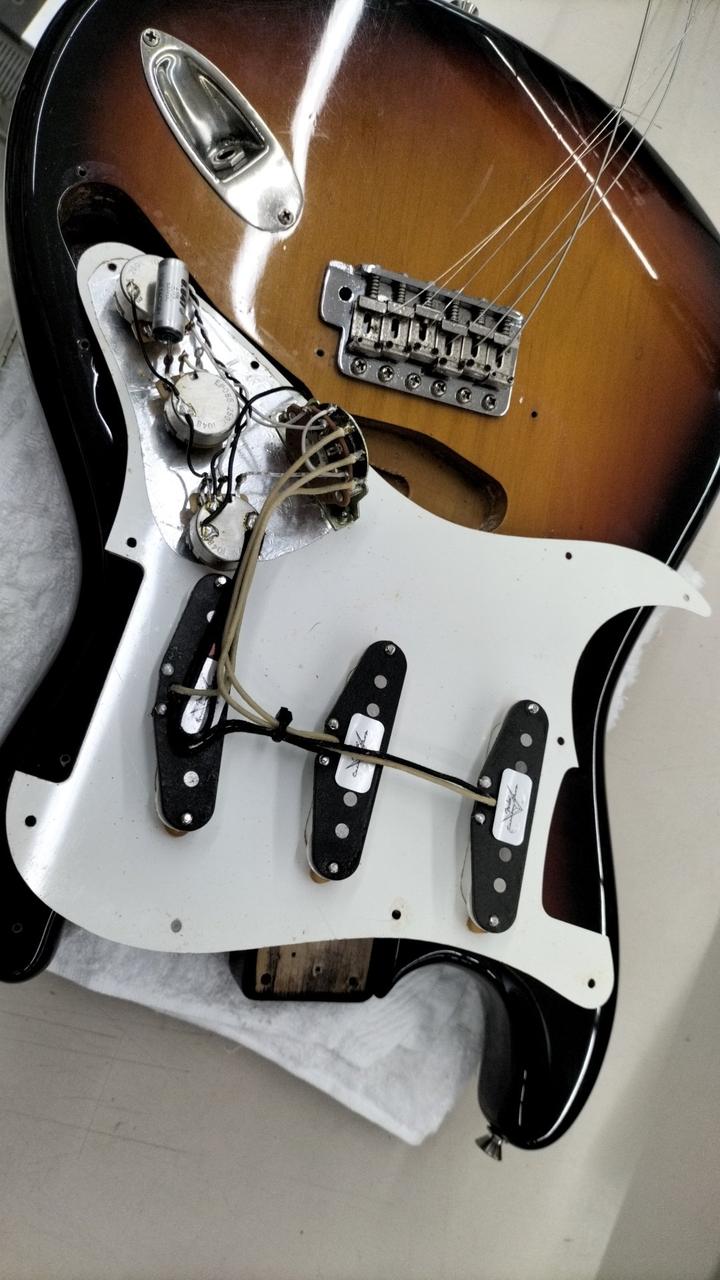 JVシリアル期のストラトキャスターです。ボディ:アルダー ネック:メイプル 指板:ローズウッド。 |