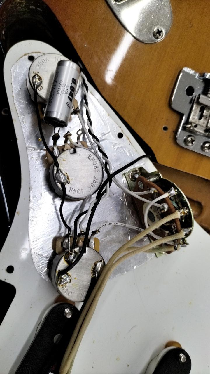 62年仕様でピックガードはホワイトの3Pでヴィンテージ感を醸し出しています。 |