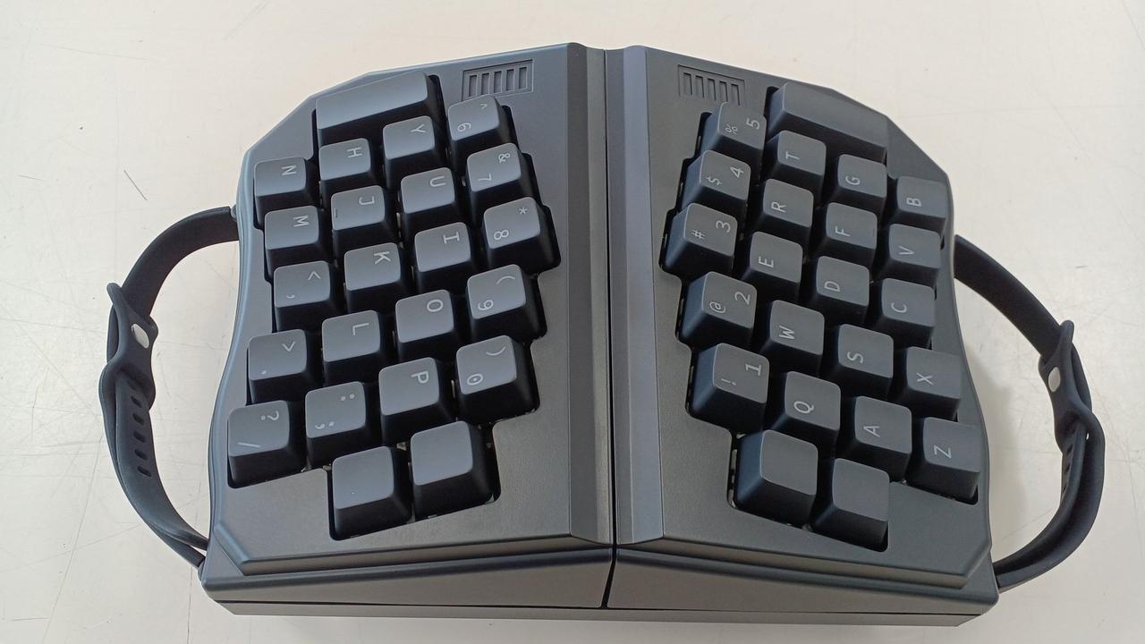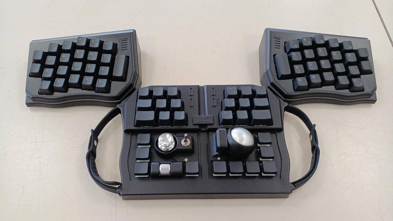 両手でつかんで使えるキーボード、VRやARでの仮想デスクトップと相性が良いです |