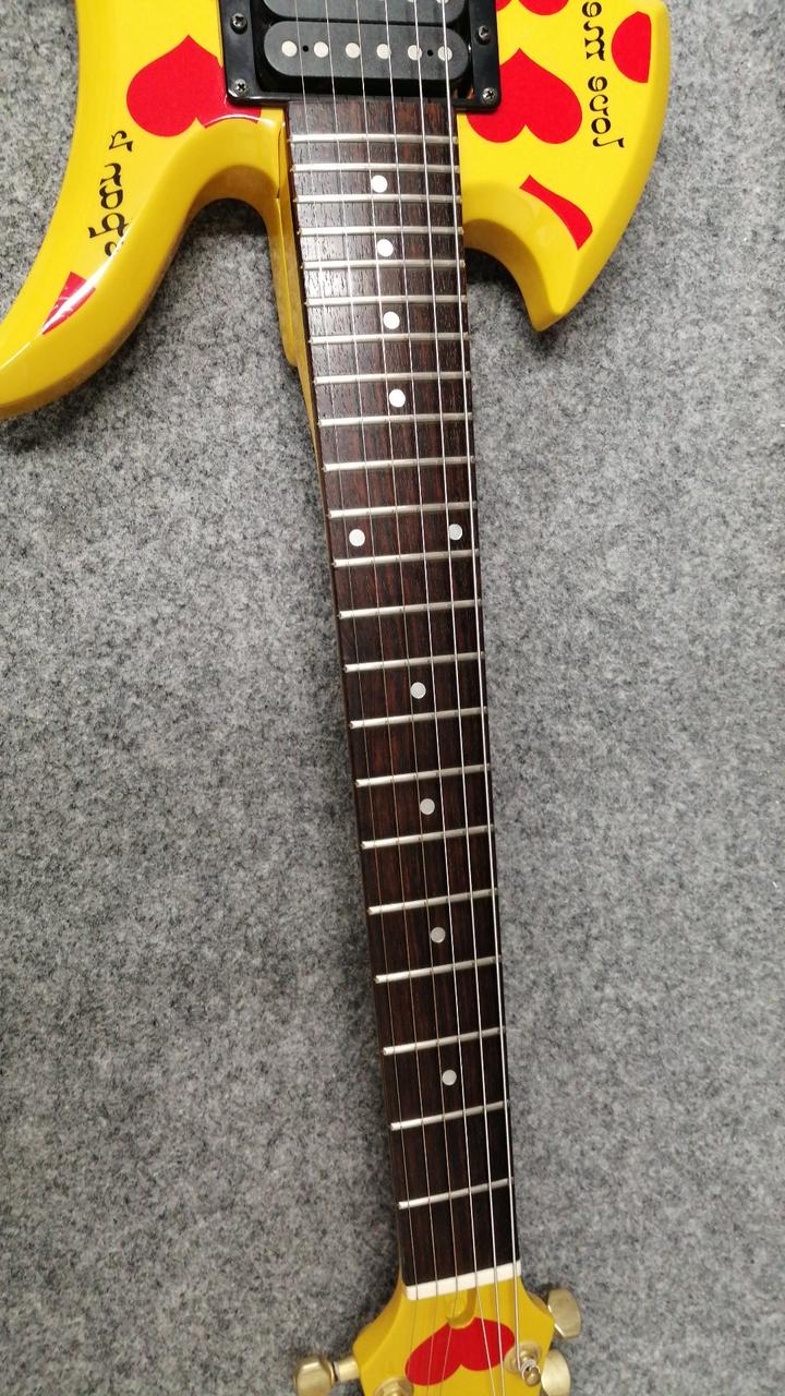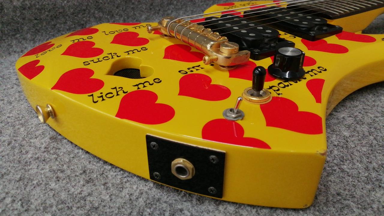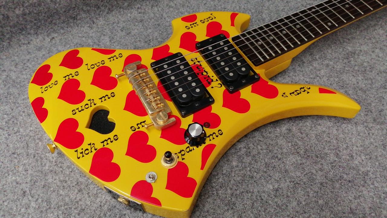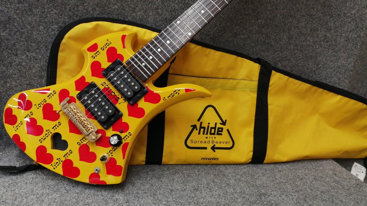 ☆メンテナンス済み☆ X JAPAN hide氏後期のメイン【FERNANDES/MG-X Yellow Heart】のデザインをそのままミニギターに |
