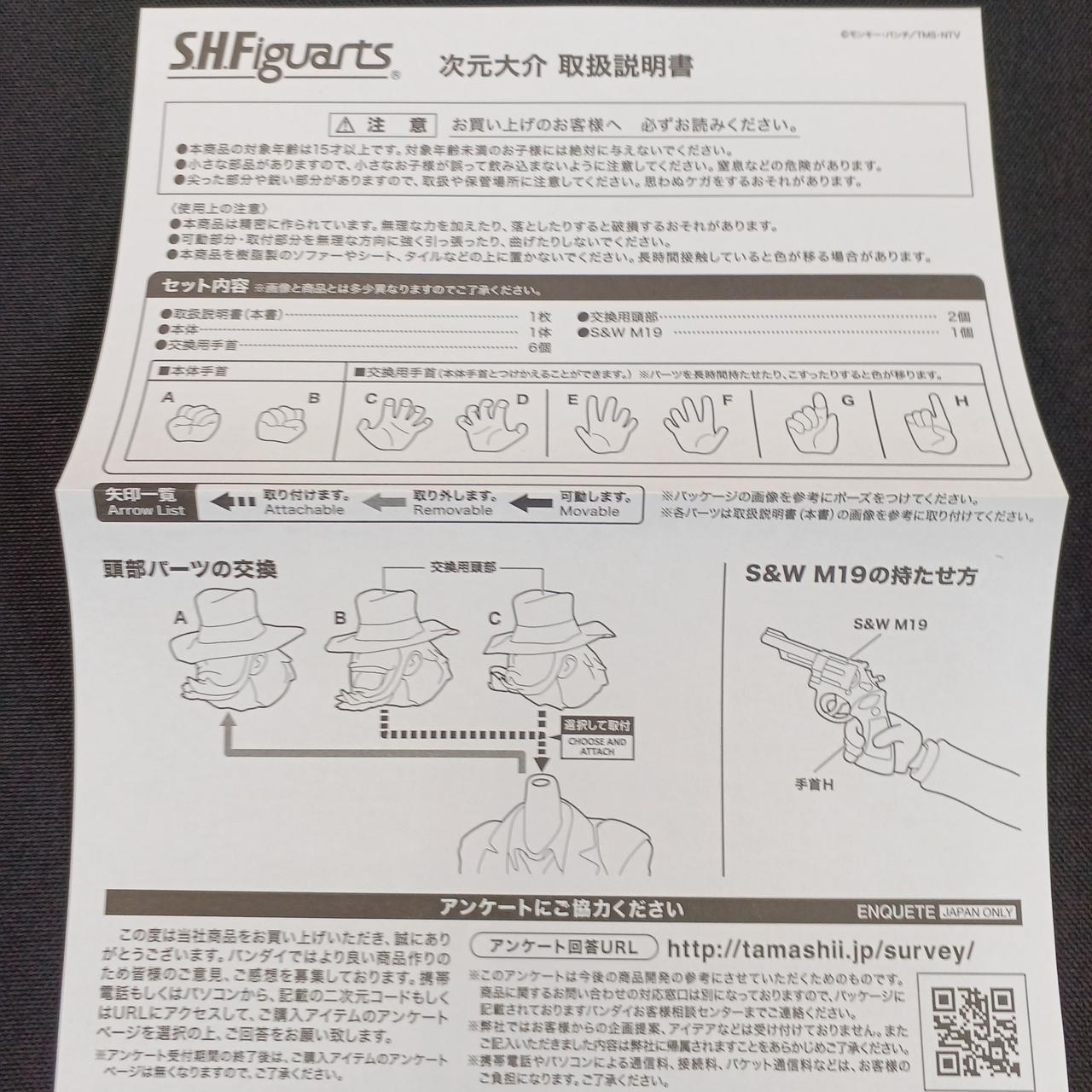 次元の愛銃に加え、交換用の頭部パーツや手首パーツも付属。 |