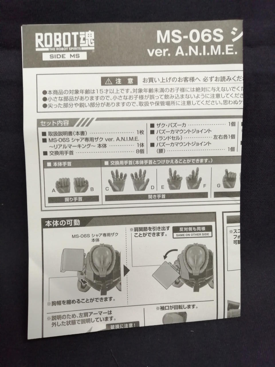 説明書、交換用パーツ一式、武器パーツ一式、予備アンテナ、手首格納デッキ |