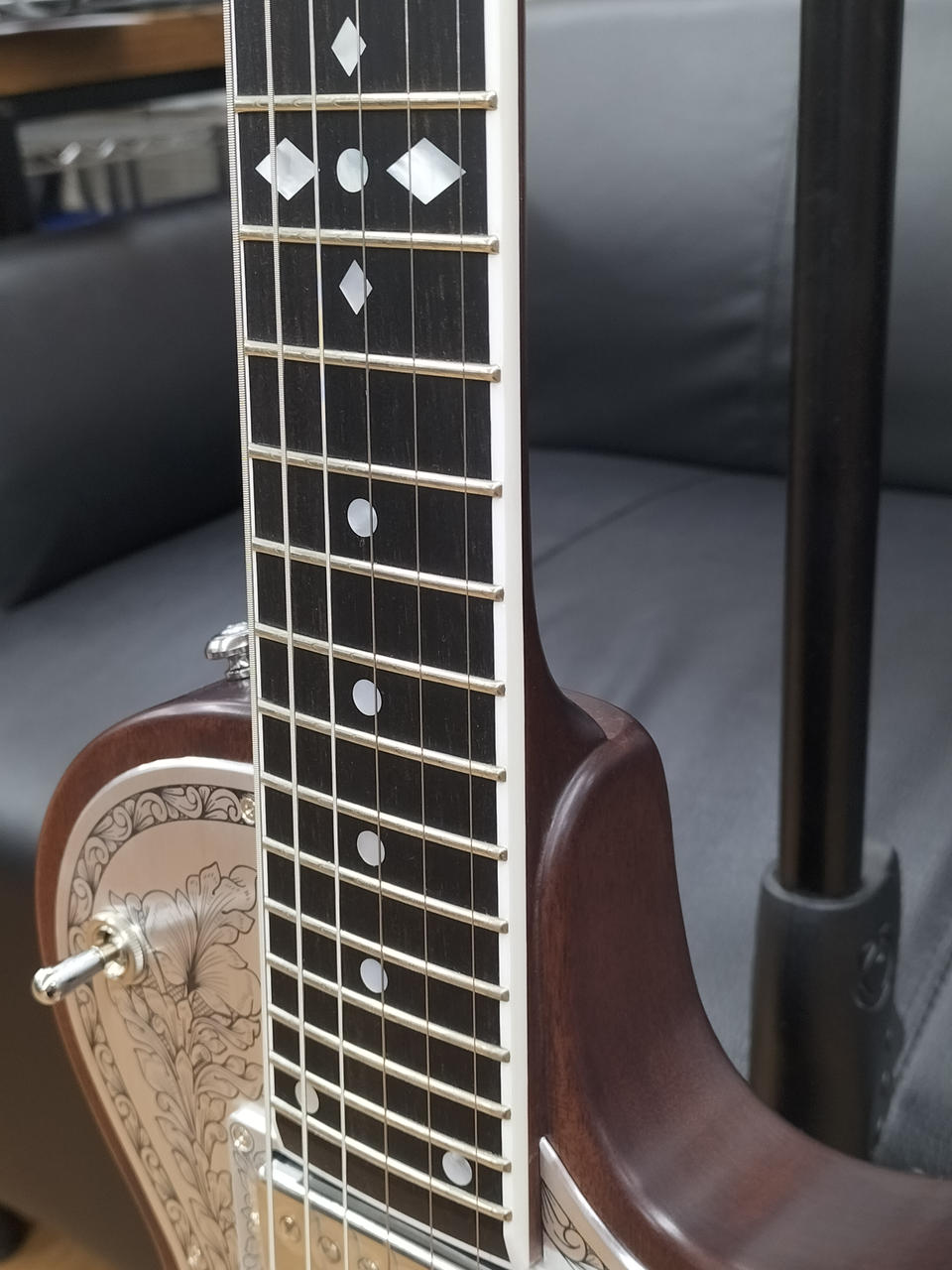 ボディ材質:アフリカンマホガニー ネック材質:アフリカンマホガニー 指板材質:エボニー |