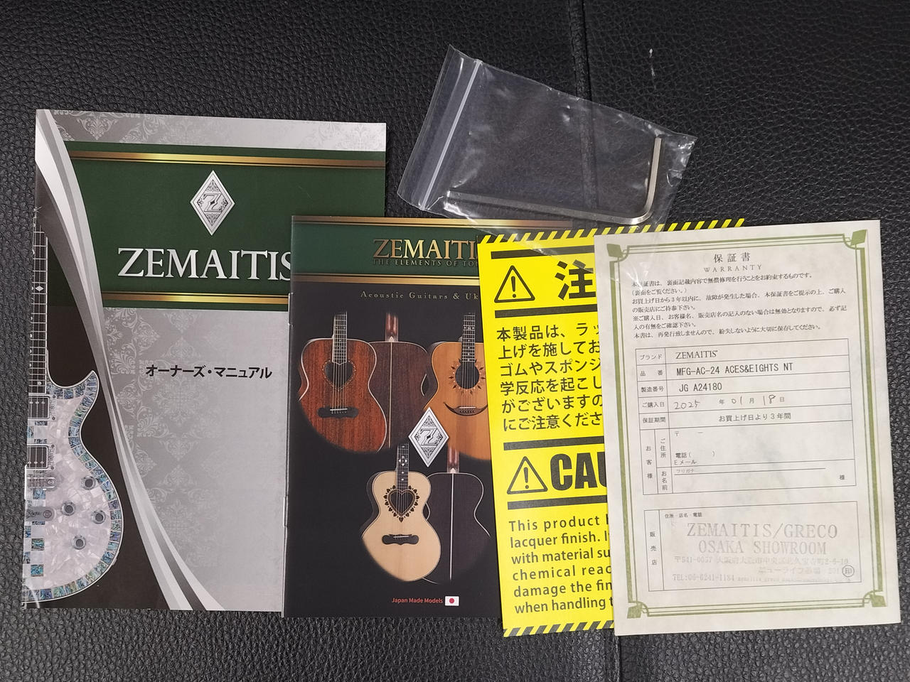 取扱説明書、保証書、六角レンチ、純正ギグバッグ ※オリジナルのGOTOH製ペグ欠品 |