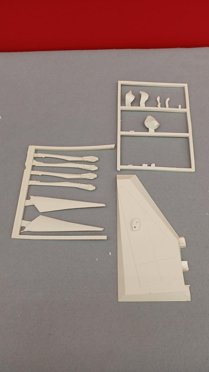 全て揃ってます。一部のパーツに灰色の塗料が塗られてます。一部のパーツに赤いインクのようなものがついてます。 |