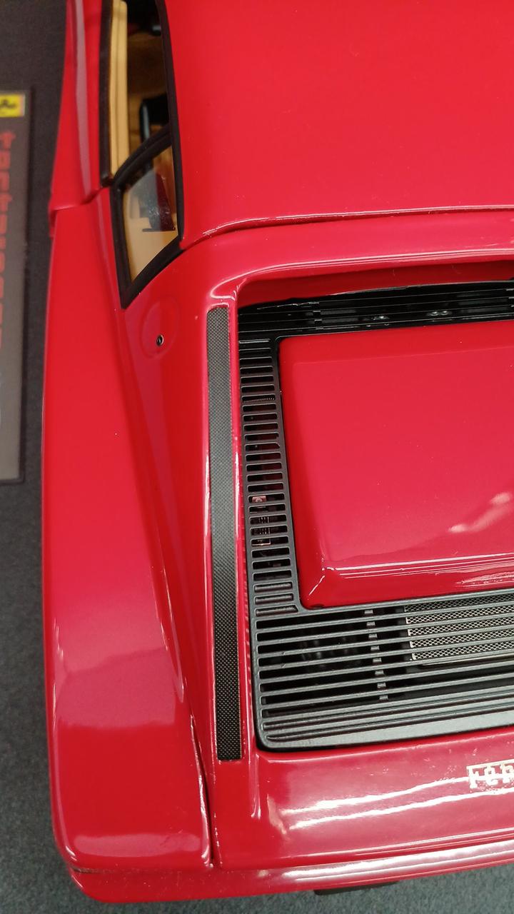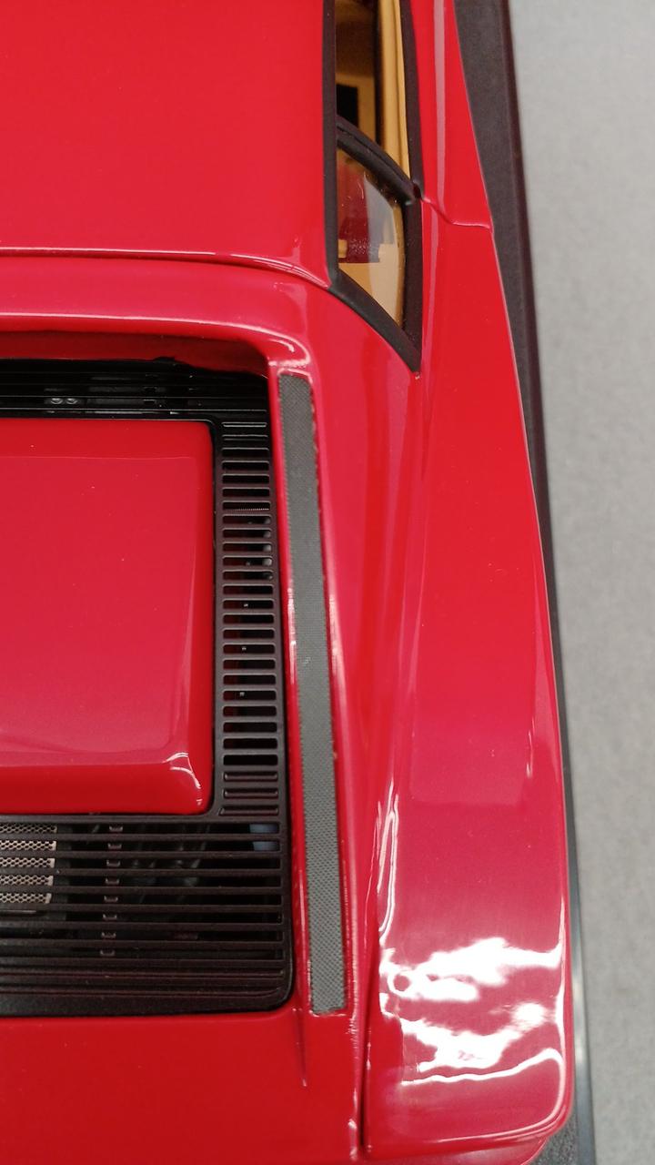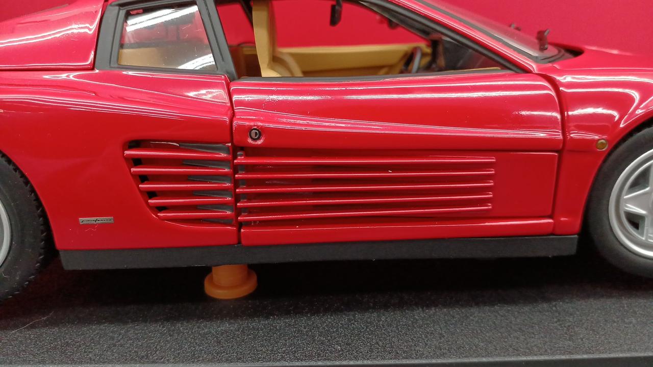 車の右側に白い汚れ有り、右側に黒い汚れ有り。後ろの黒い細長いテープの隙間に埃が入り込んでしまってます。タイヤ汚れ有り |