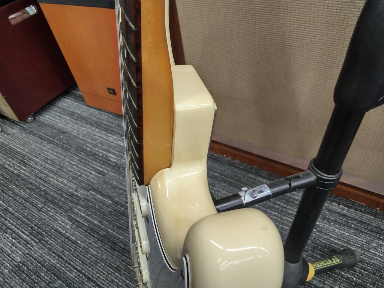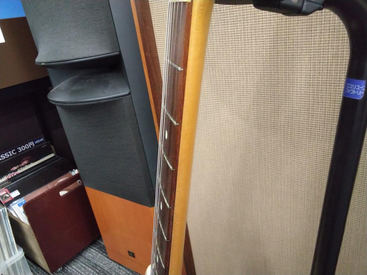ネックデイト86年、フレット残り6割ほど、6弦側ハイ起きの傾向有りますが支障は感じないレベルです、ロッド90°締め込み残り180° |