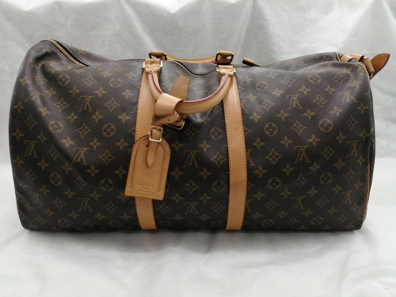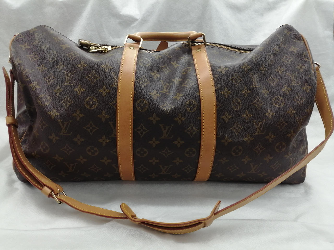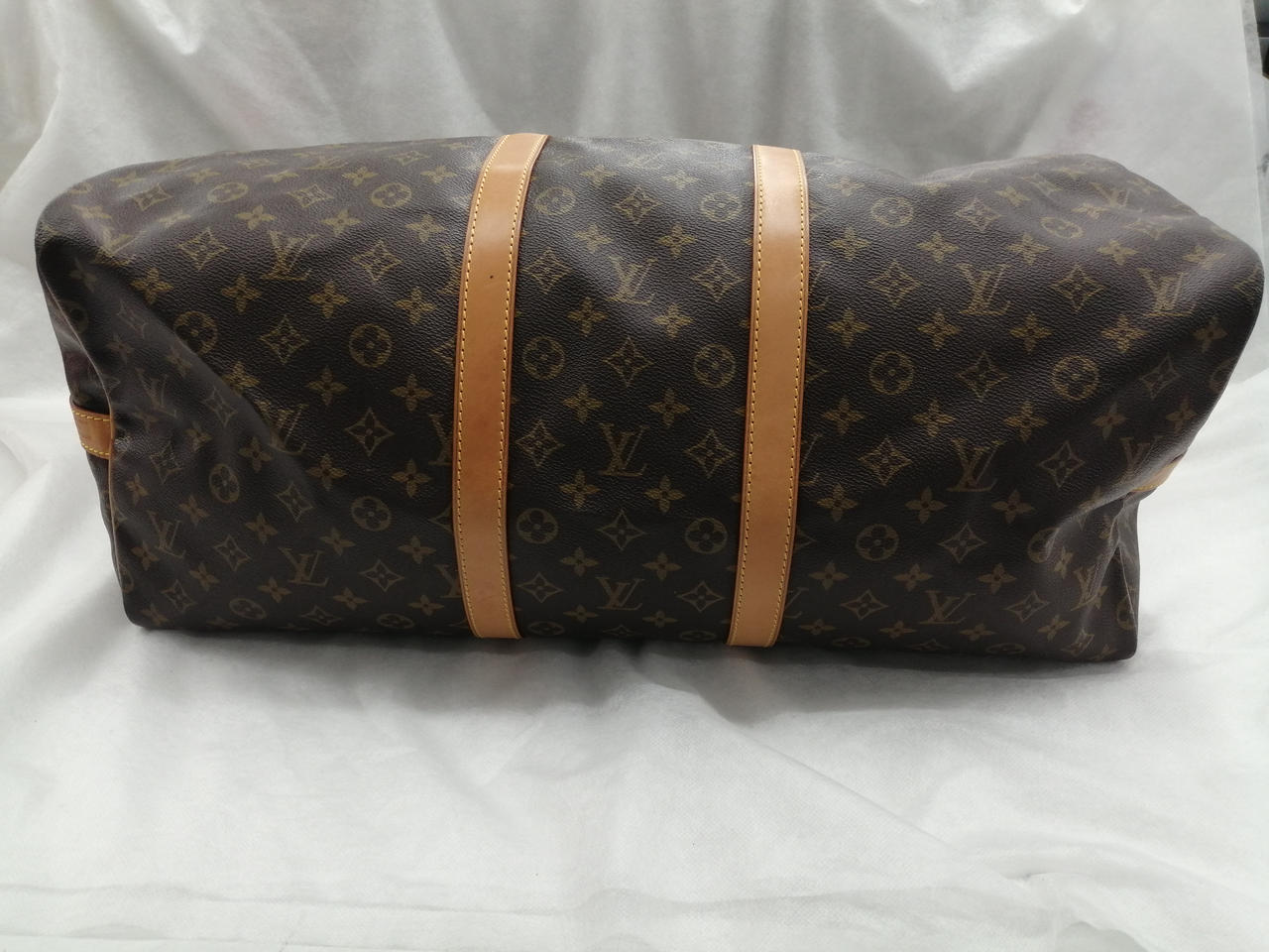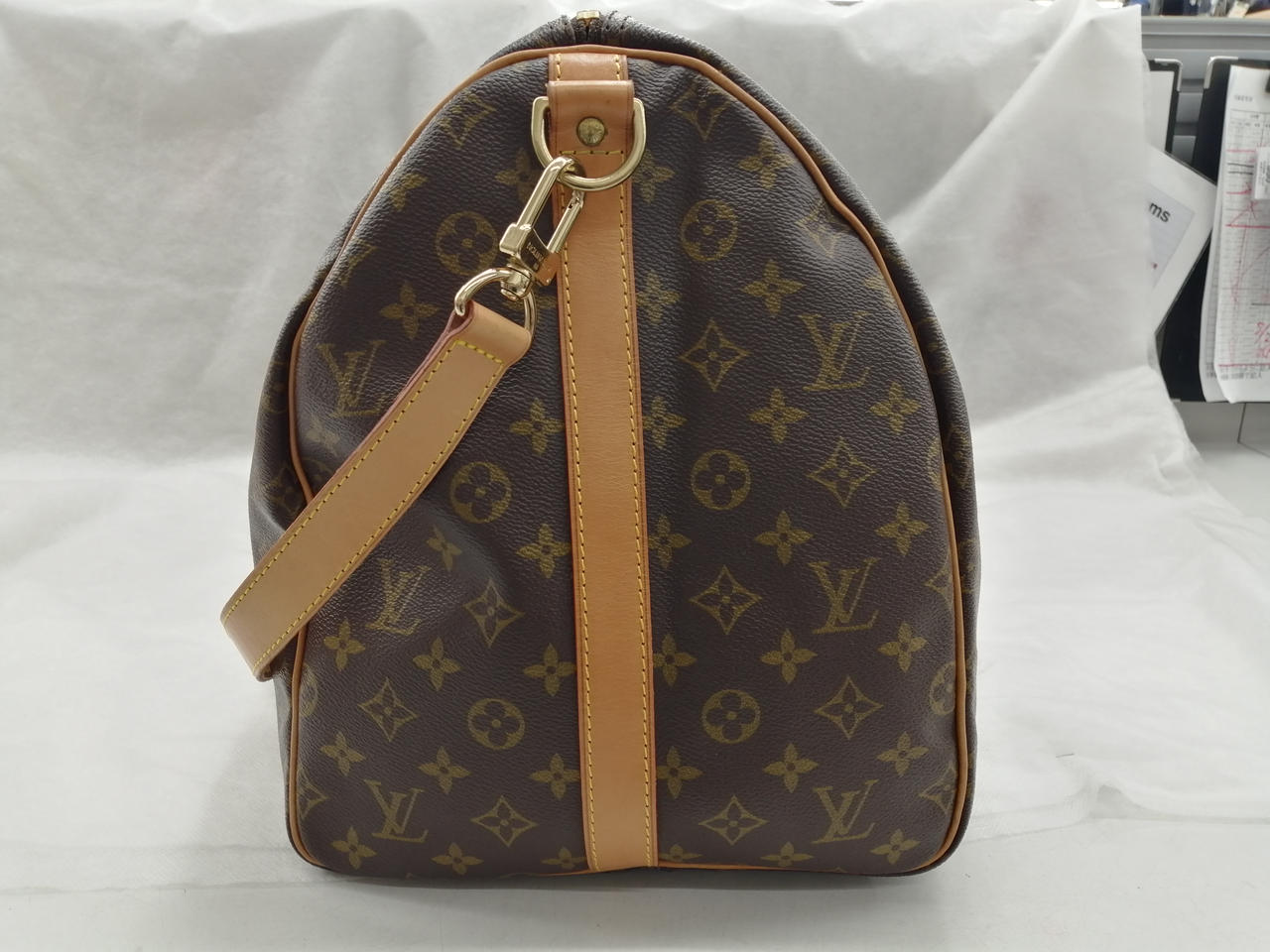 1995年製 旧型 モノグラム 鍵なし錠付 ソフトタイプのトラベルバッグ。肩に掛けて快適に持ち運べるレザーストラップ付き。長期旅行でも安心のサイズ。 |