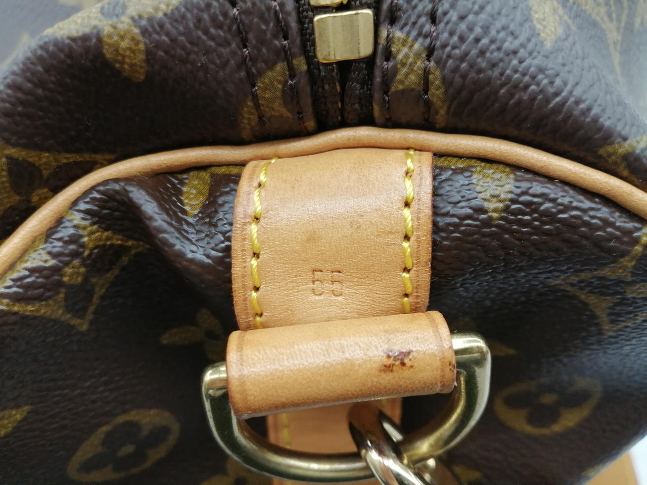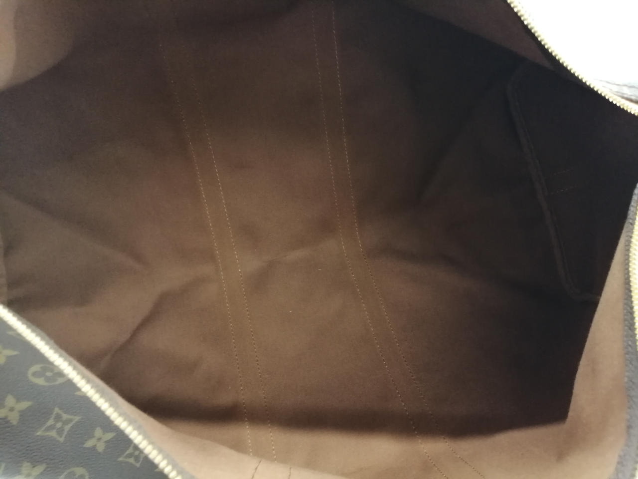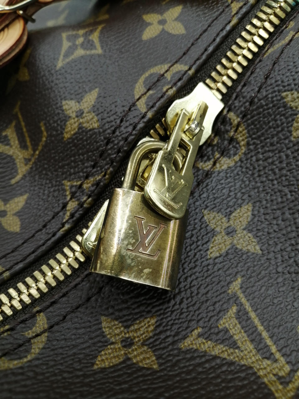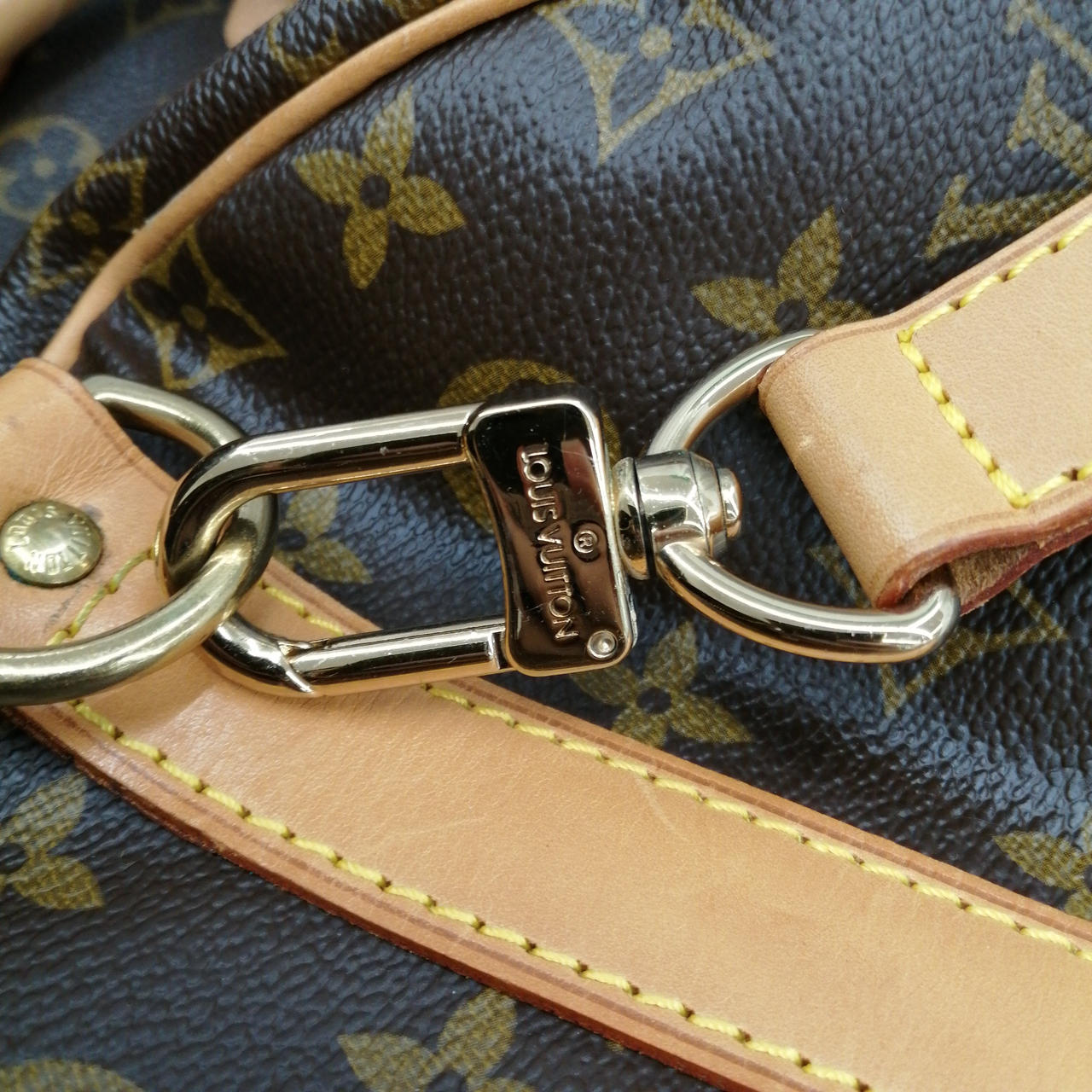 1995年製 旧型 モノグラム 鍵なし錠付 ソフトタイプのトラベルバッグ。肩に掛けて快適に持ち運べるレザーストラップ付き。長期旅行でも安心のサイズ。 |