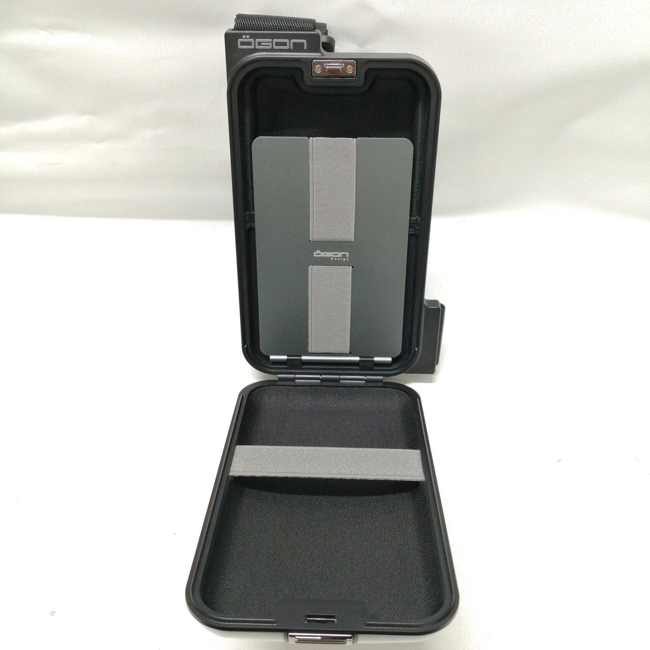 スロットが3か所(大きいサイズ1つ、小さいサイズ2つ)あり、それぞれのサイズにあわせて、紙幣、カード、パスポート、車載書類などをしっかりと固定できます。
