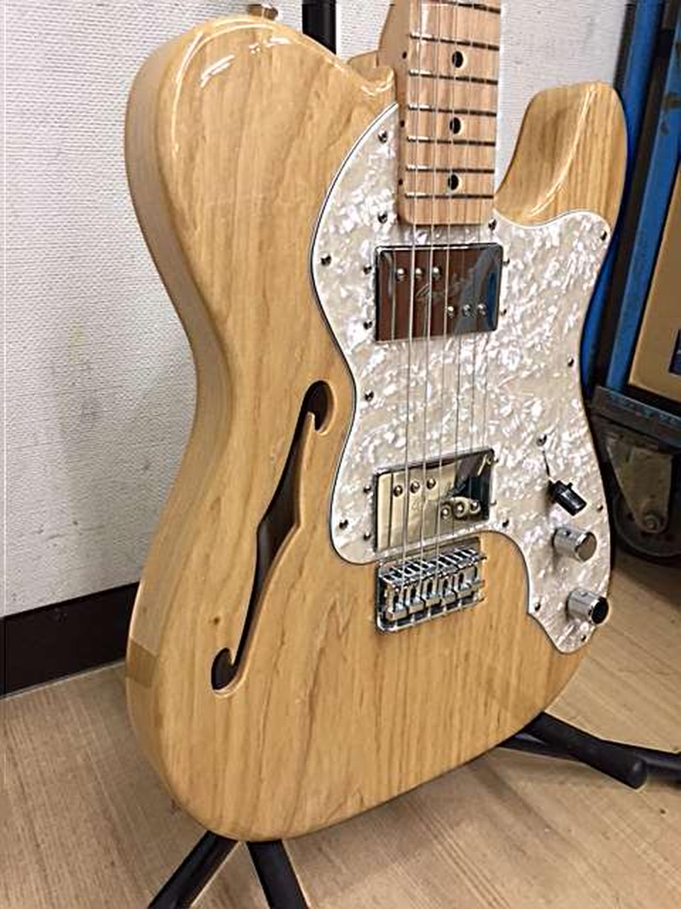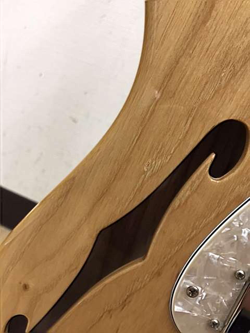 グロスフィニッシュのアッシュボディを採用。21F、9.5インチラジアスのUシェイプメイプルネック