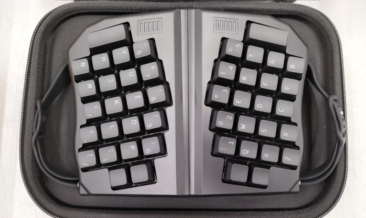 両手で握りながらタイプできる変形キーボード 寝ながらでも操作できます!BLUETOOTH接続と有線対応 |
