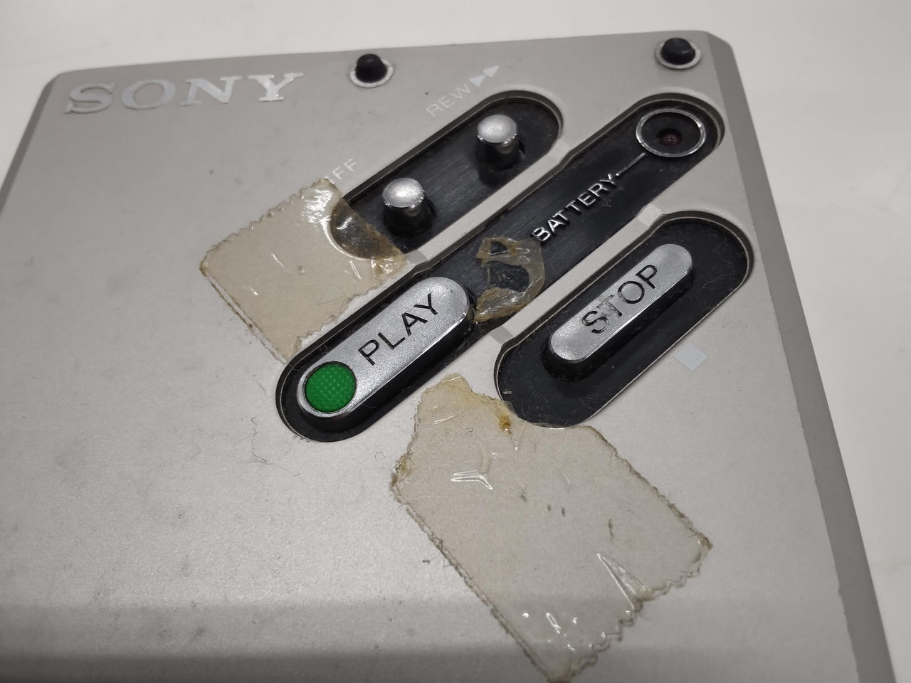 再生できますが、途中で再生ボタンが勝手に上がってしまいます。AC無いため電池での通電確認です。 |