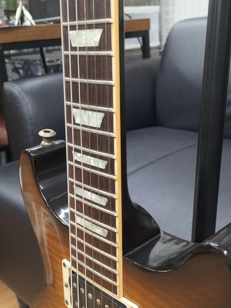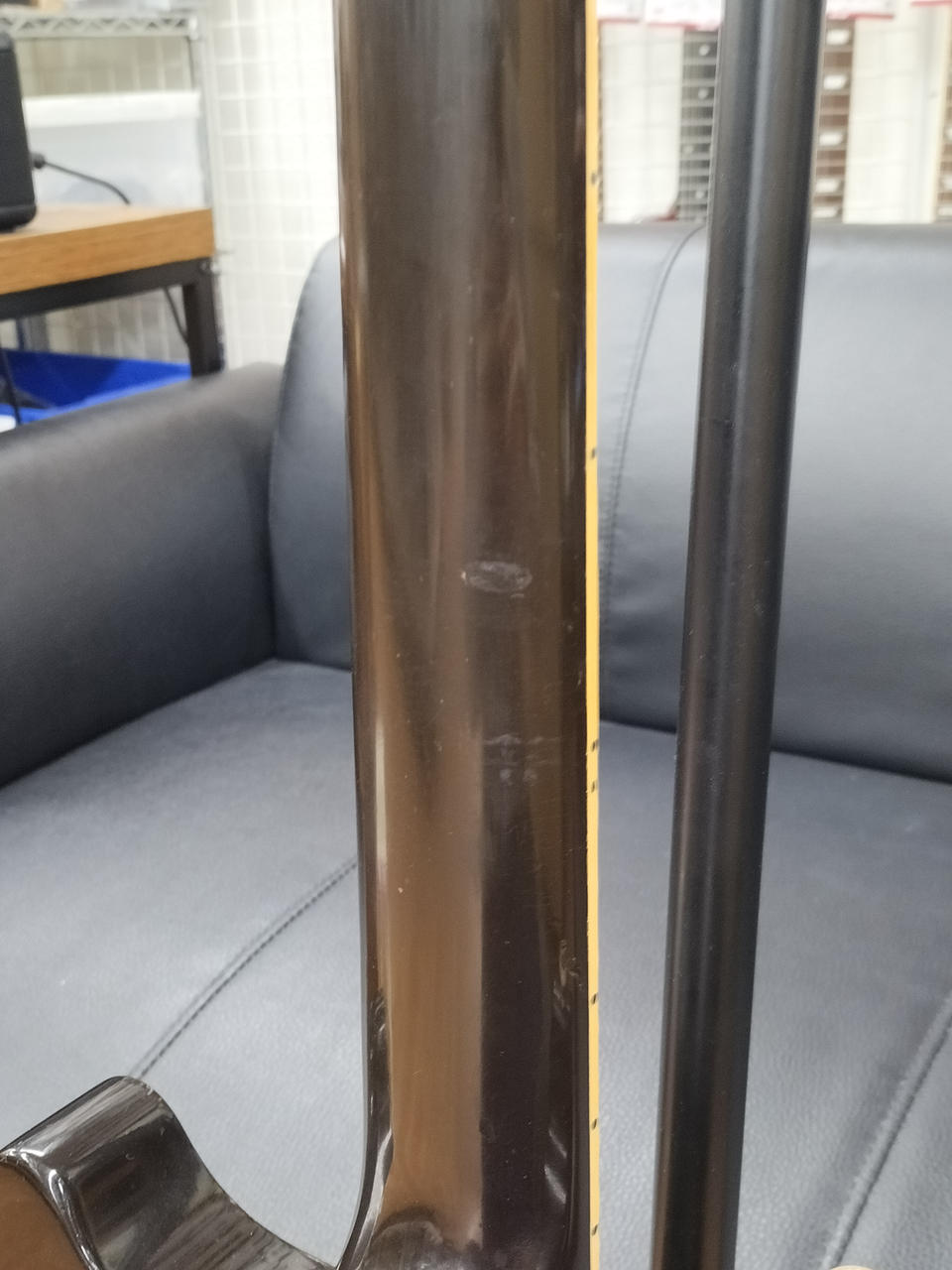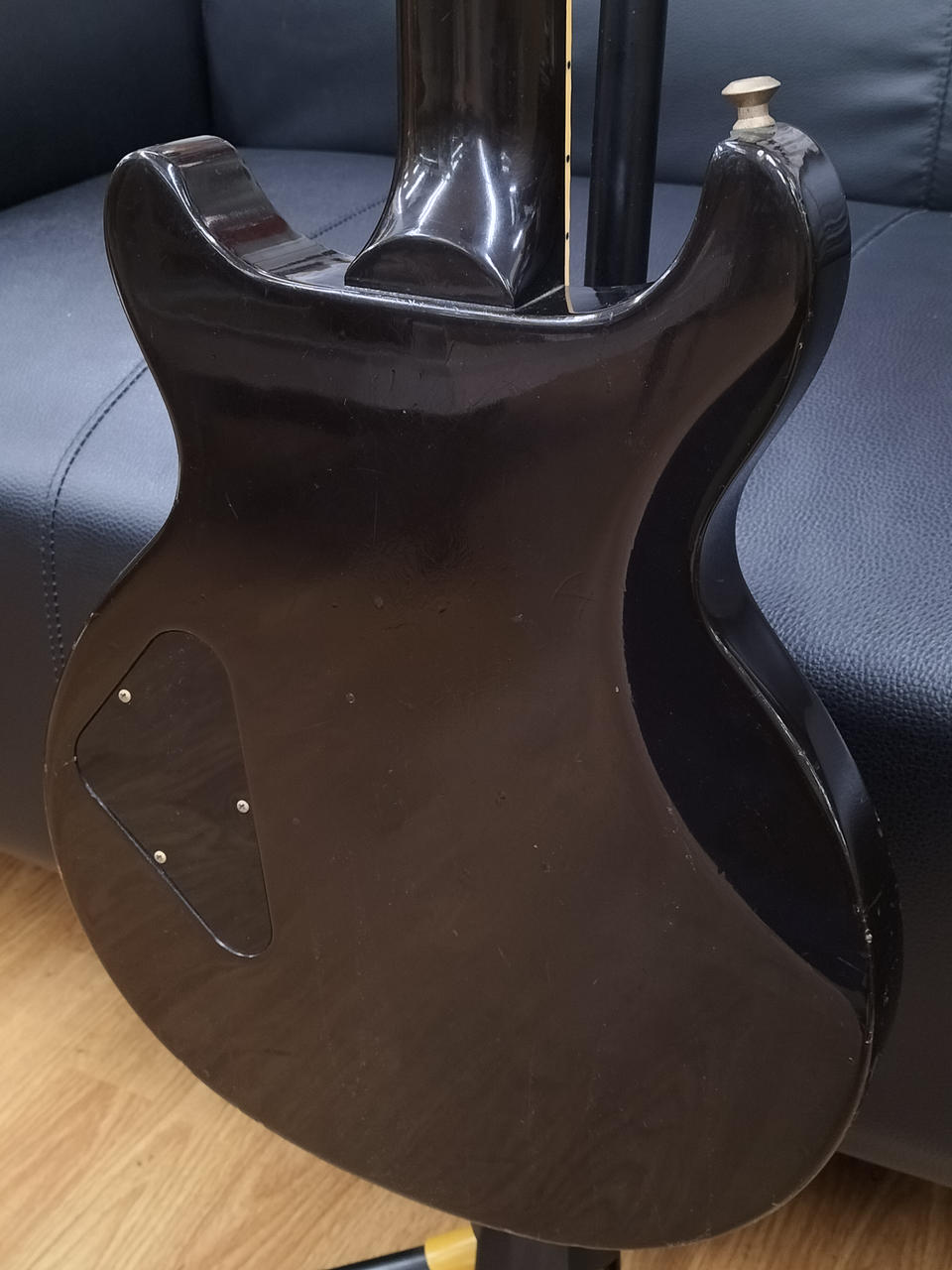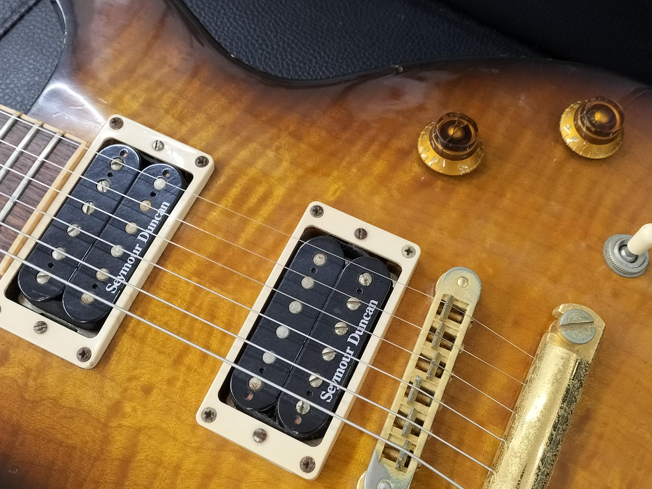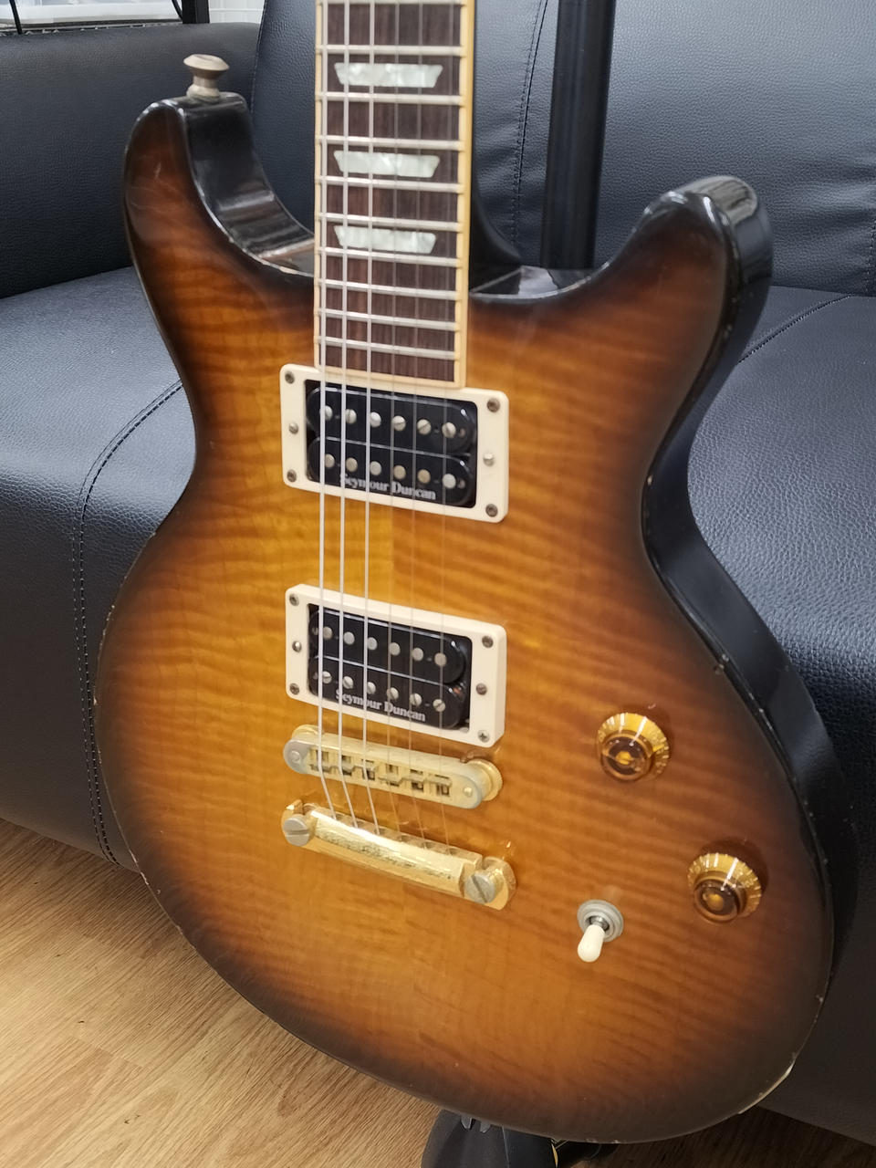 P.UをSEYMOUR DUNCAN製に換装、コントロールを両P.Uのボリュームに変更、ストラップピンをロックピンに交換された一本 |