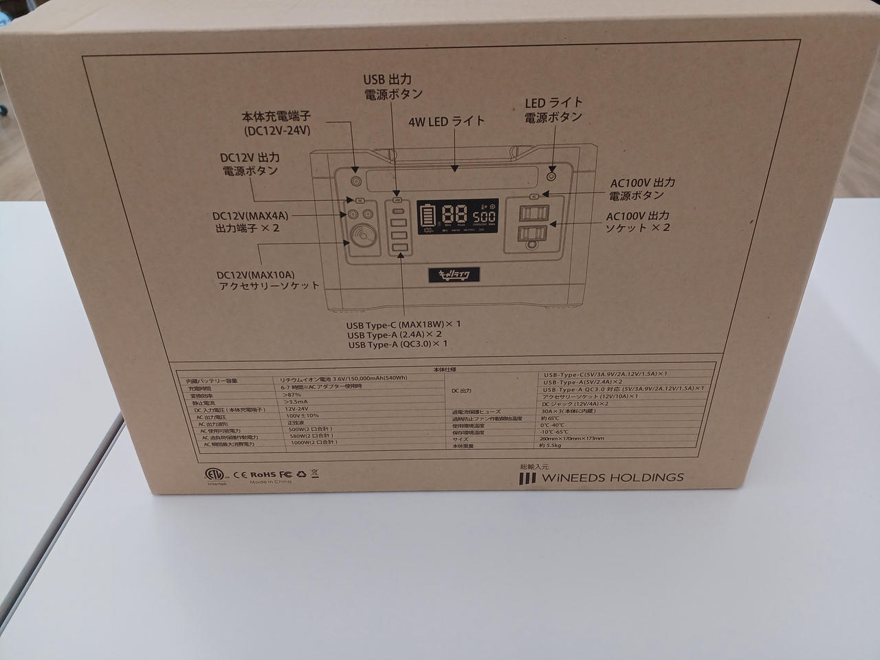 内蔵バッテリー容量 3.6V/150,000mAh(540Wh) 充電時間:6-7時間 |