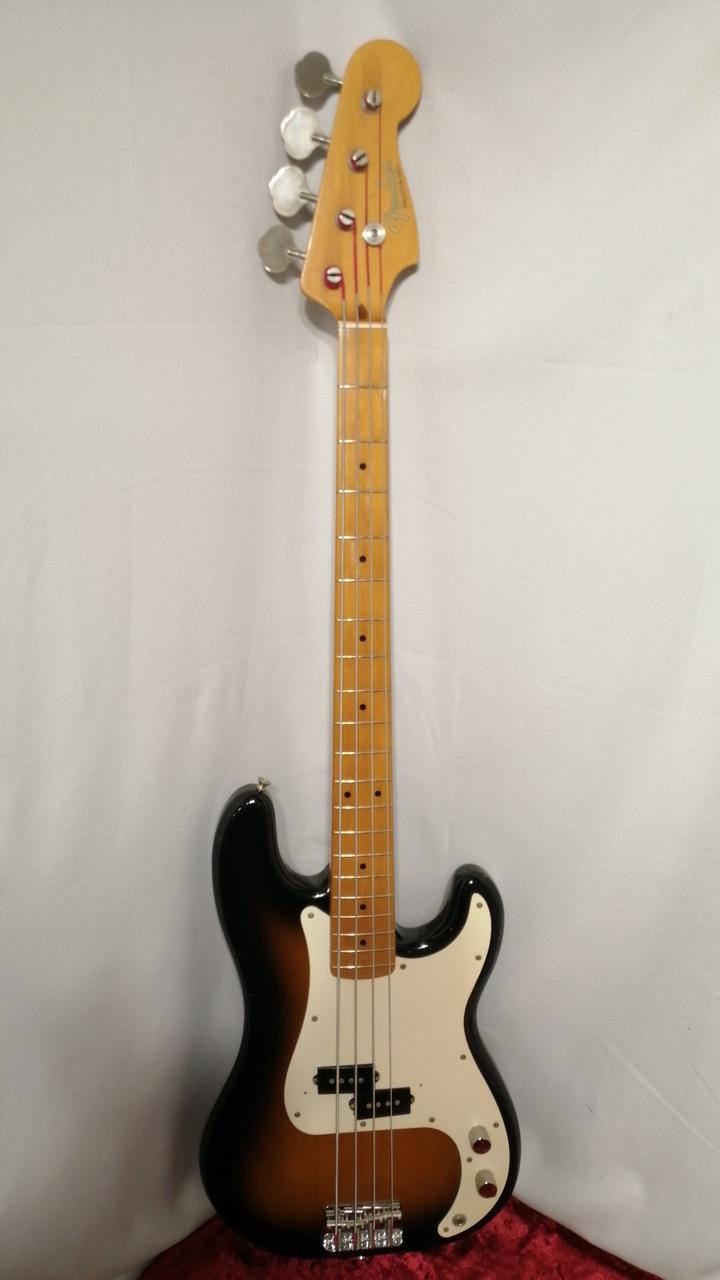 バスウッドボディにメイプルネック&指板の50sスタイルを踏襲したプレシジョンベース。 |