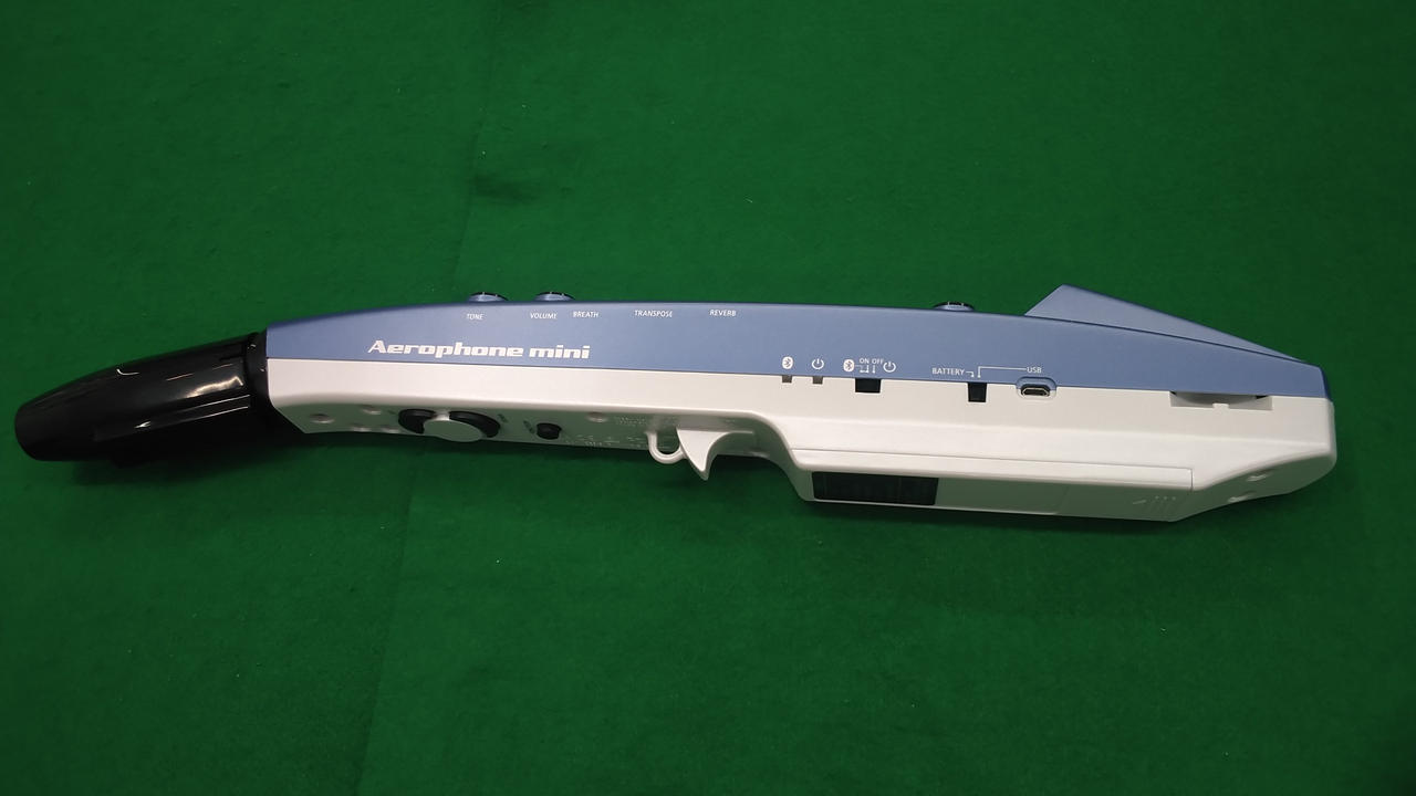 リコーダー感覚で演奏できるデジタル管楽器。サックス、フルート、バイオリン、 クラリネット、トランペット、シンセサイザーの6つの音色を内蔵アプリ 「AEROPHONE MINI PLUS」に接続すれば、50以上の音色を演奏できます |