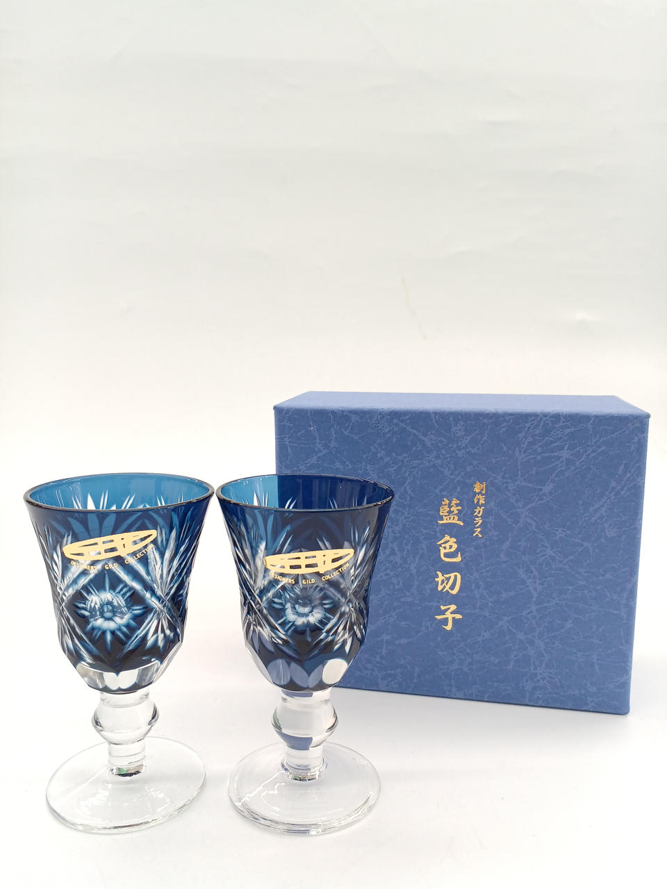 曽根工芸/切子ガラス/伝統工芸/切子グラス藍色切子グラス/ペアグラス/ブランデーグラス/ウイスキーグラス/手作り/酒杯ペア/ |