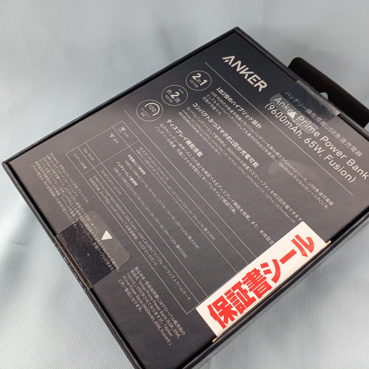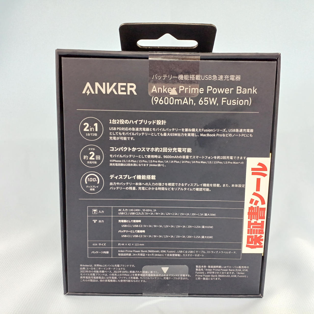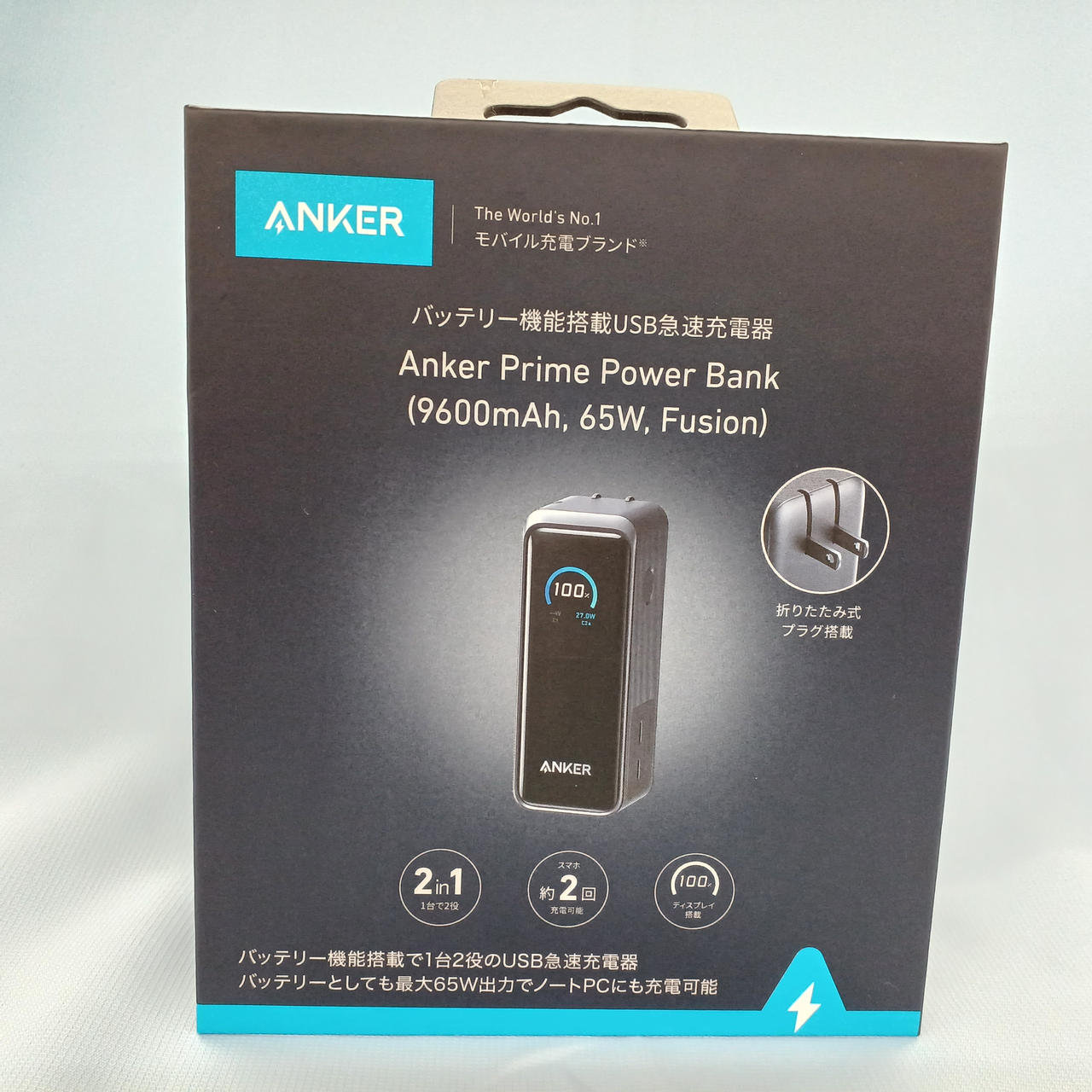 合計最大65W出力に対応した9600mAhモバイルバッテリー |