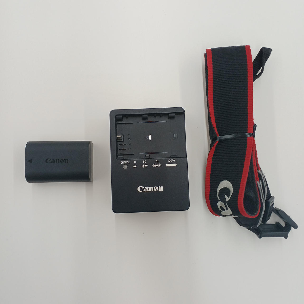 充電器、バッテリー、ストラップ |