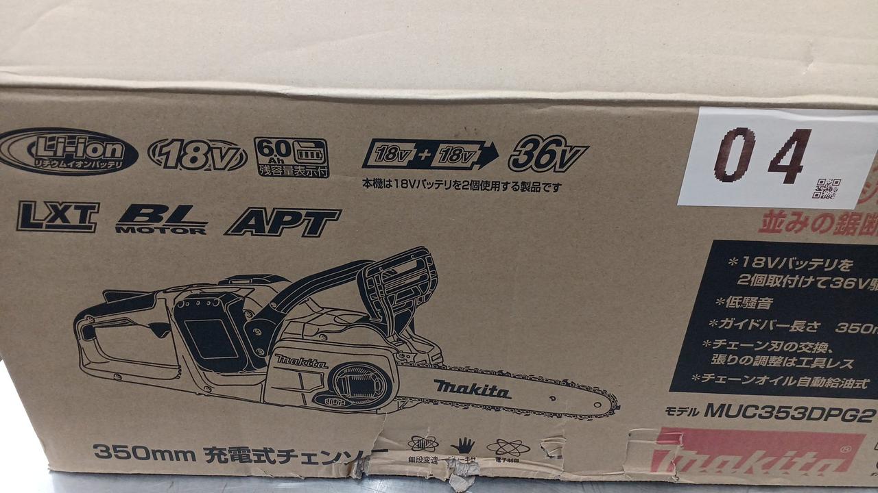 チェーンスピード(m/s)[m/分] 0~20 振動3軸合成値(m/s2) 4.0 1充電作業量(目安) 杉丸太200mm 約54本 |