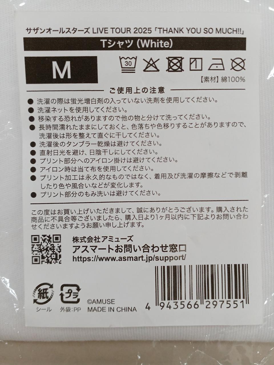 サザンオールスターズLIVE TOUR 2025「THANK YOU SO MUCH!!」の未開封Tシャツです。 |