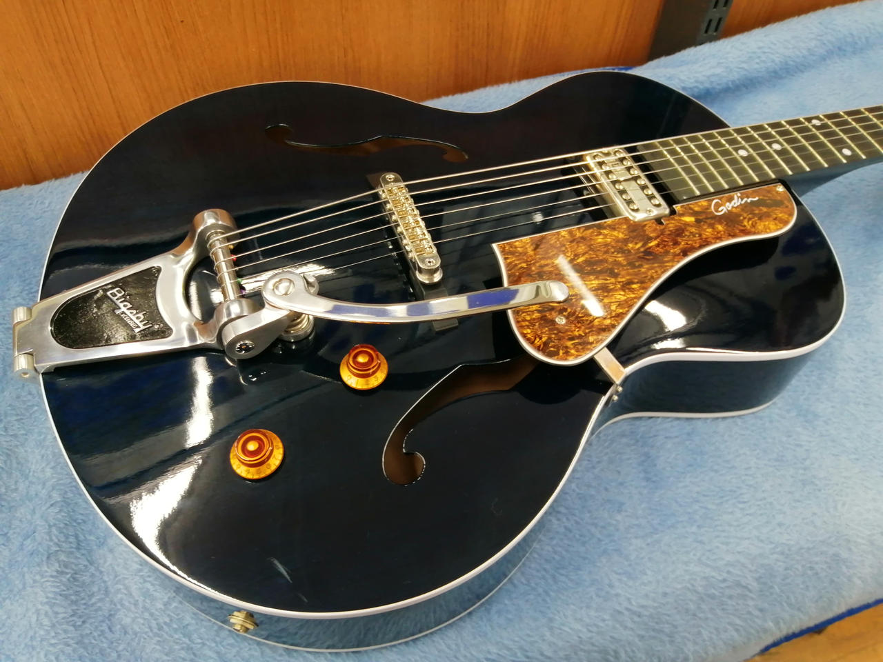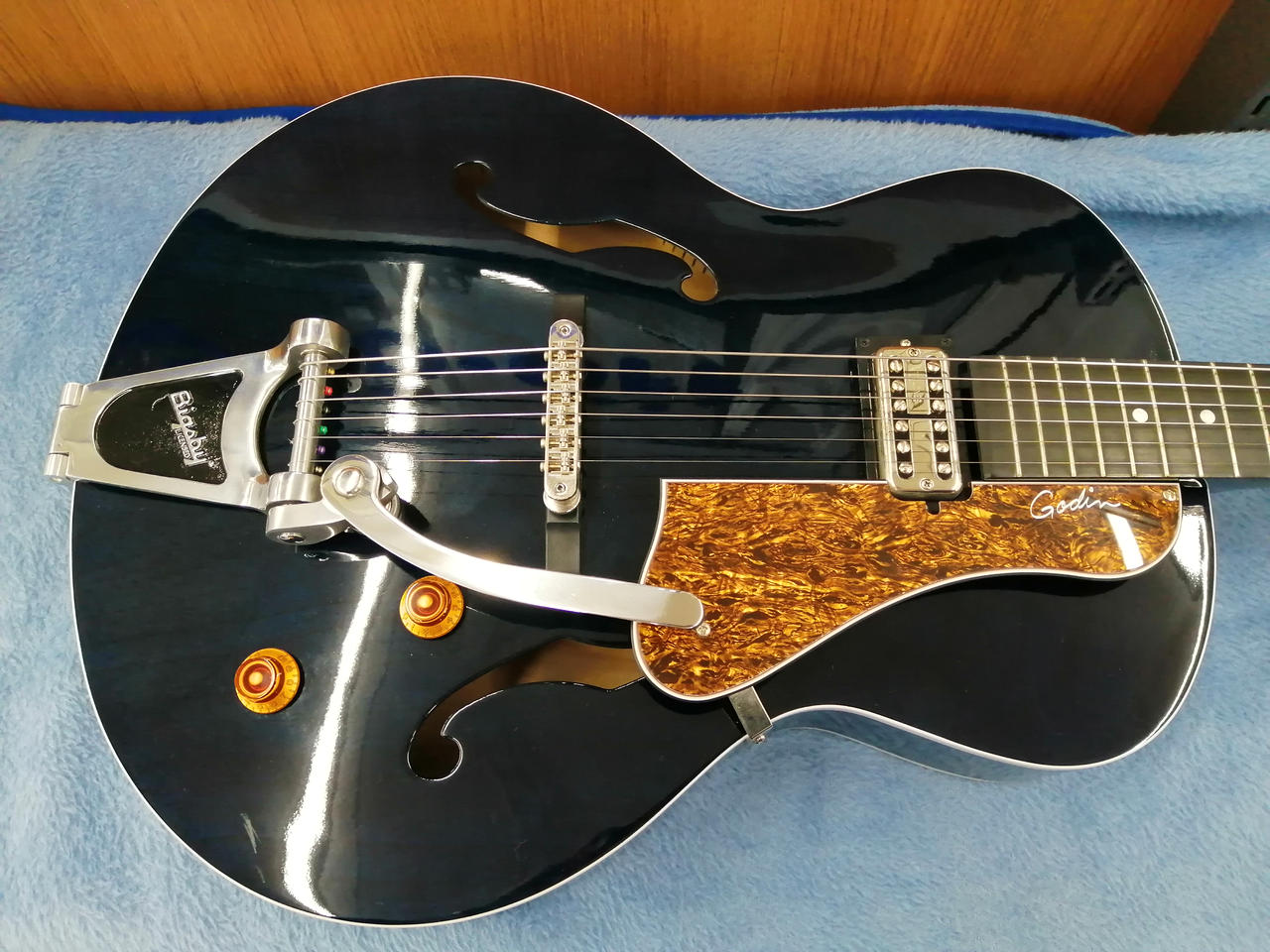 TV Jones classicピックアップとビグスビートレモロが生み出すサウンドはジャズやブルースに最適 |