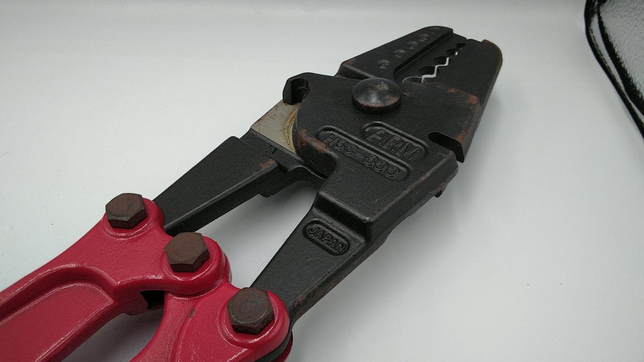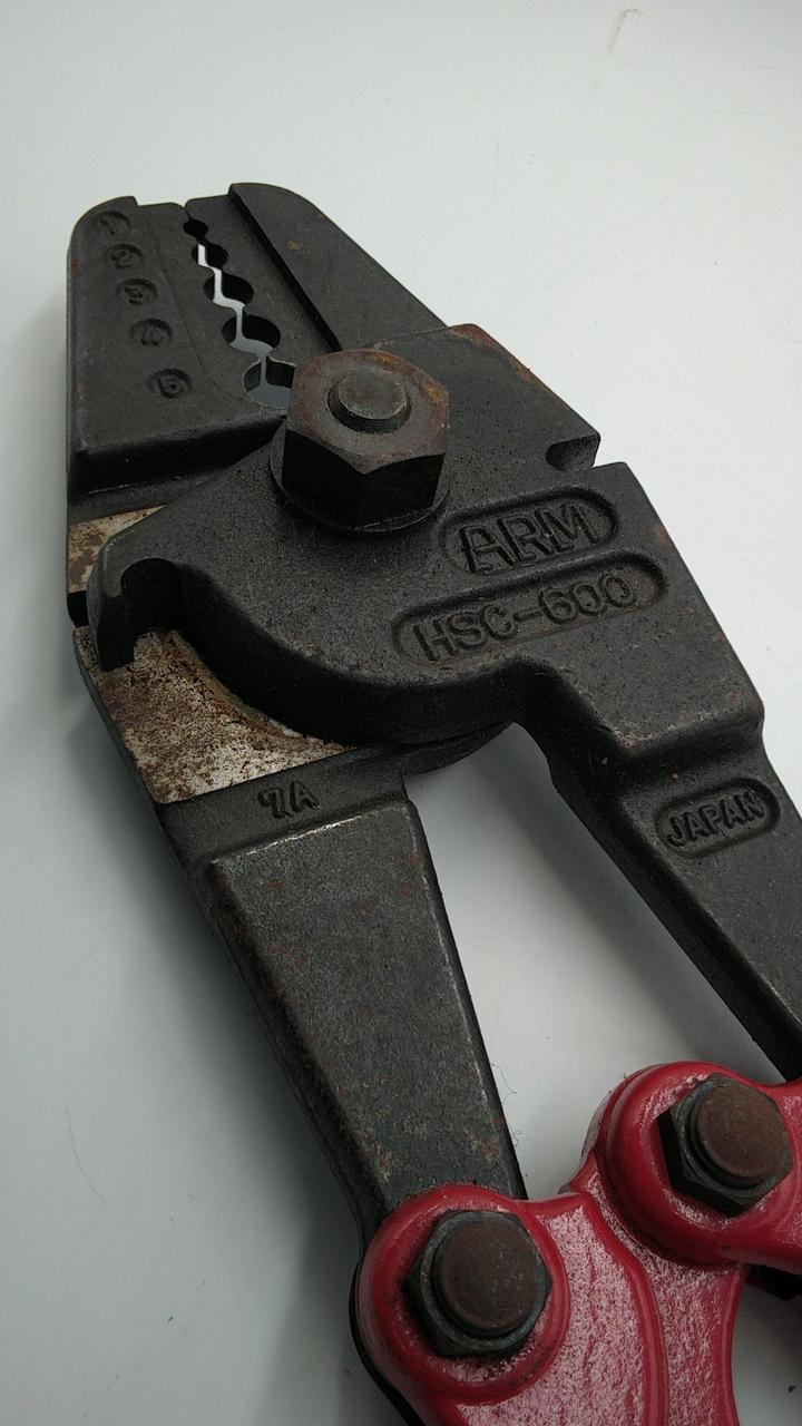 ワイヤーロープの切断、圧着(スエージ)ができる一丁二役の台付ワイヤーロープ製作専用工具です!