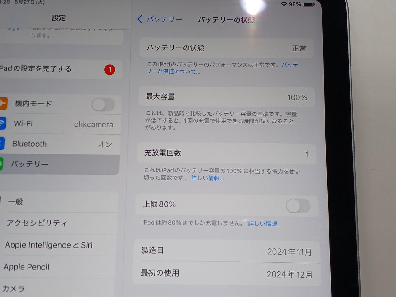 バッテリー最大容量:100% |
