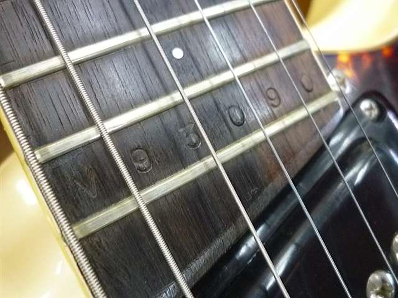 キズ・打痕の他、フレットに減りが見られるのと、ジョイント・プレート付近に塗装割れがあります。 |