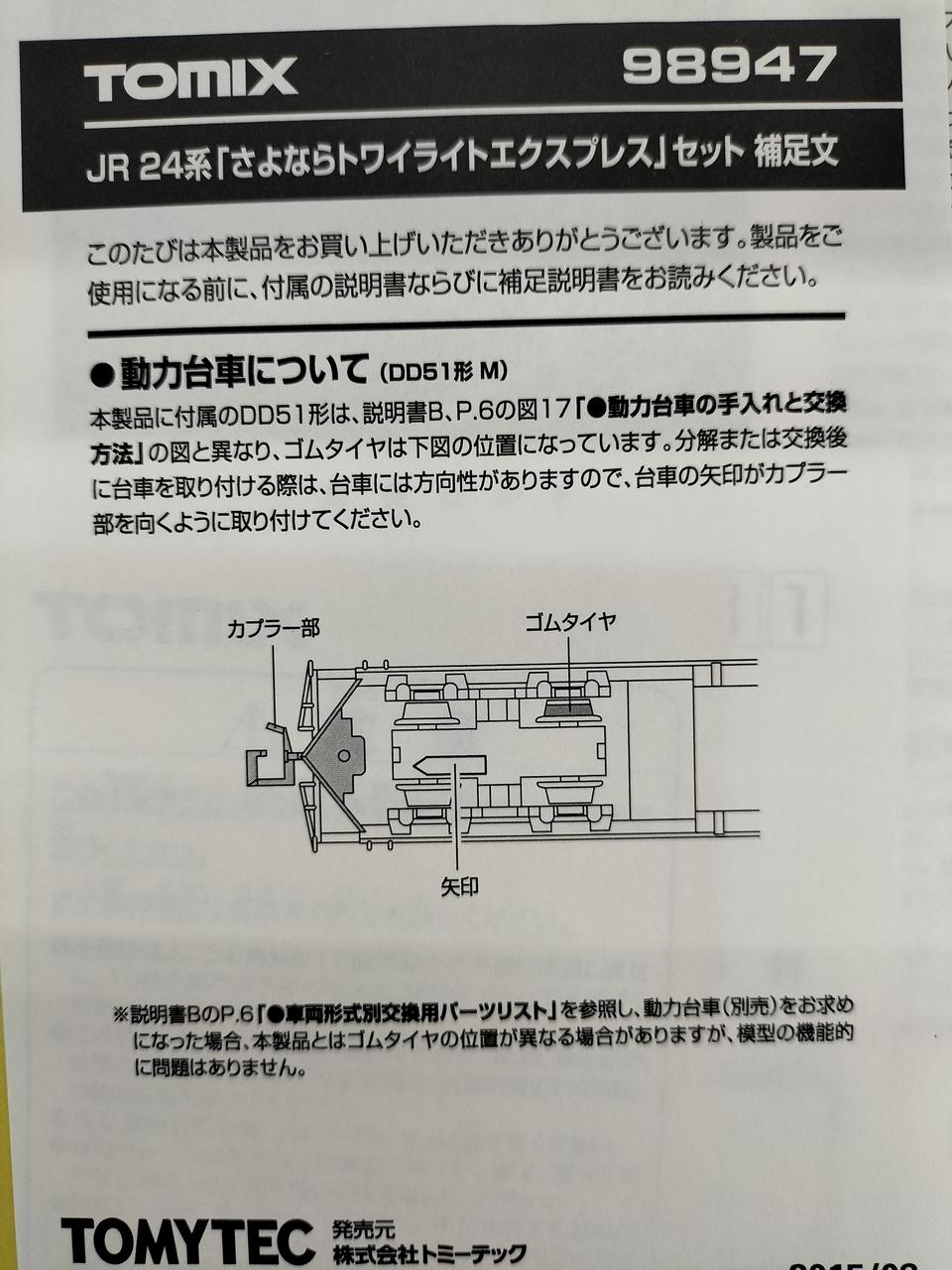 販売当時TOMIX側の不備で欠品していたパーツ |