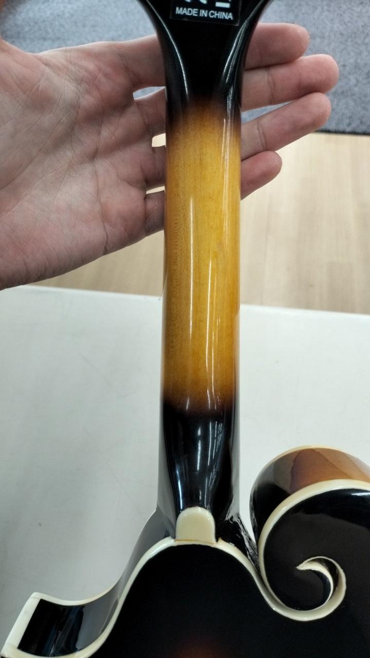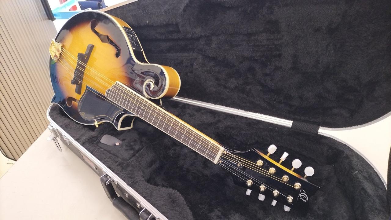 Fタイプ(Fスタイル)のフラットマンドリン。PU内蔵のエレキ8弦マンドリンです。 |