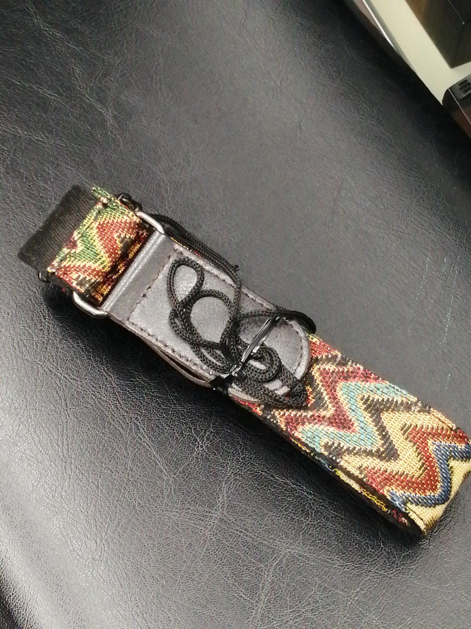 ダークブラウン地に赤茶色のストライプで |