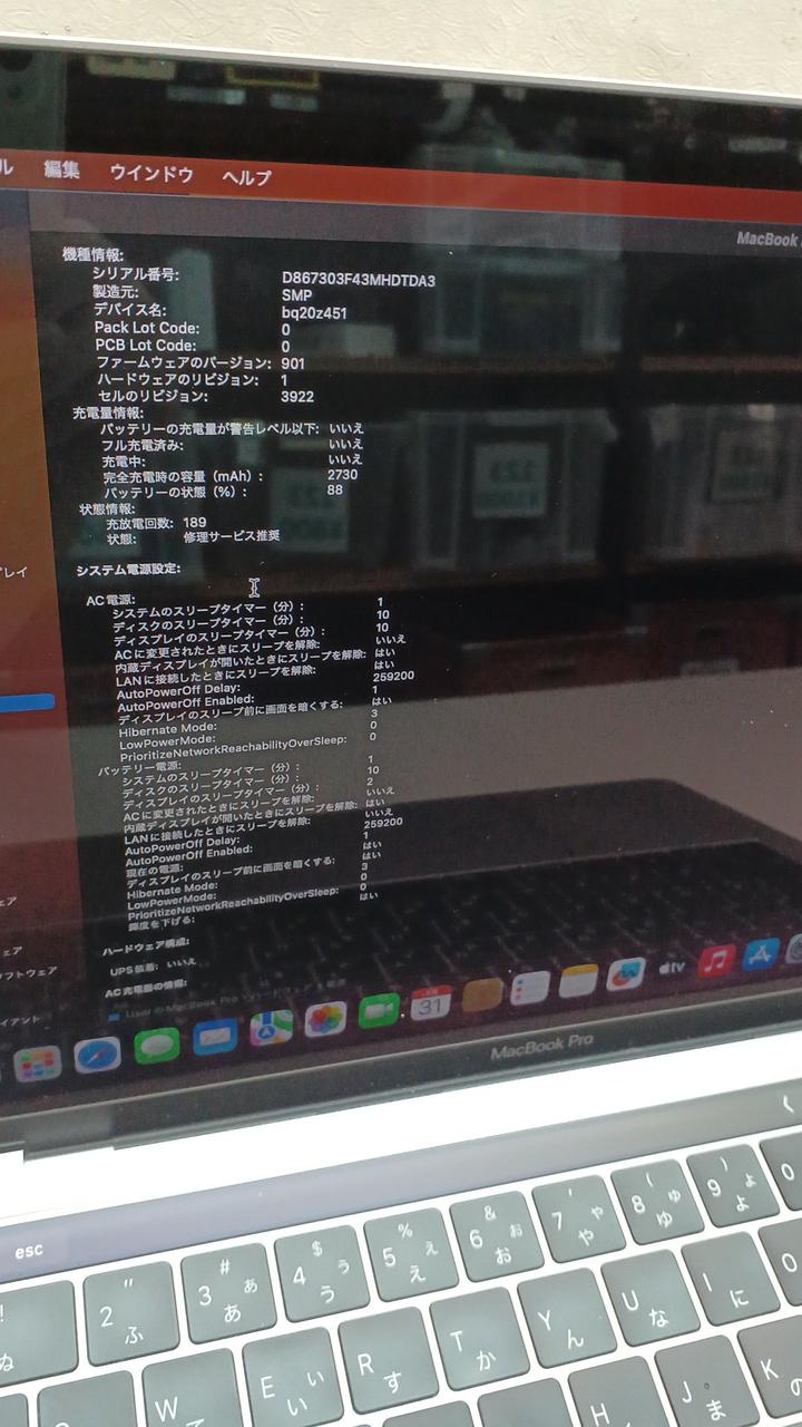CPU:i7 3.5GHz RAM:16GB SSD:256GB macOS Ventura 13.7.5 初期PASS「0000」 充放電回数:189回 ※バッテリー修理サービス推奨表示です。 付属:ACアダプター |