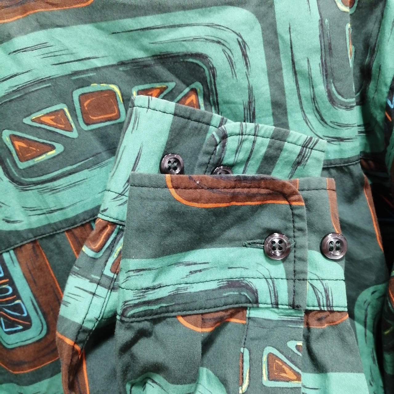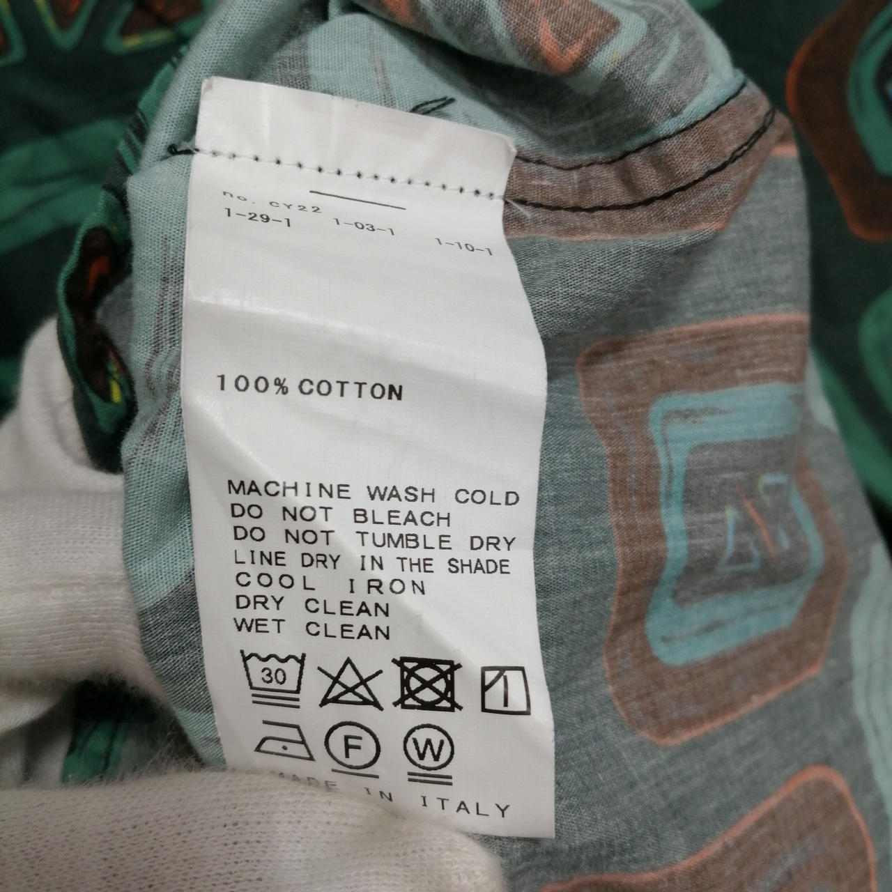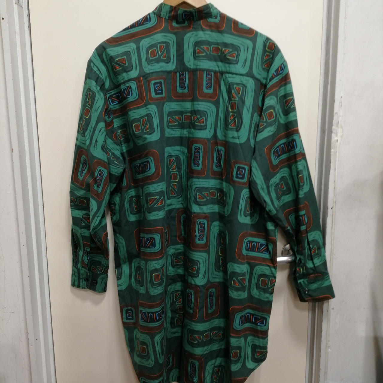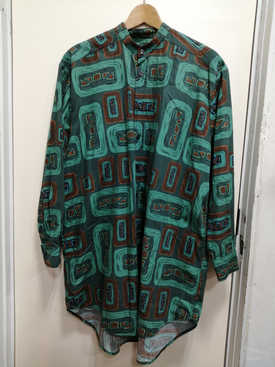 総柄ノーカラーロングスリーブシャツ