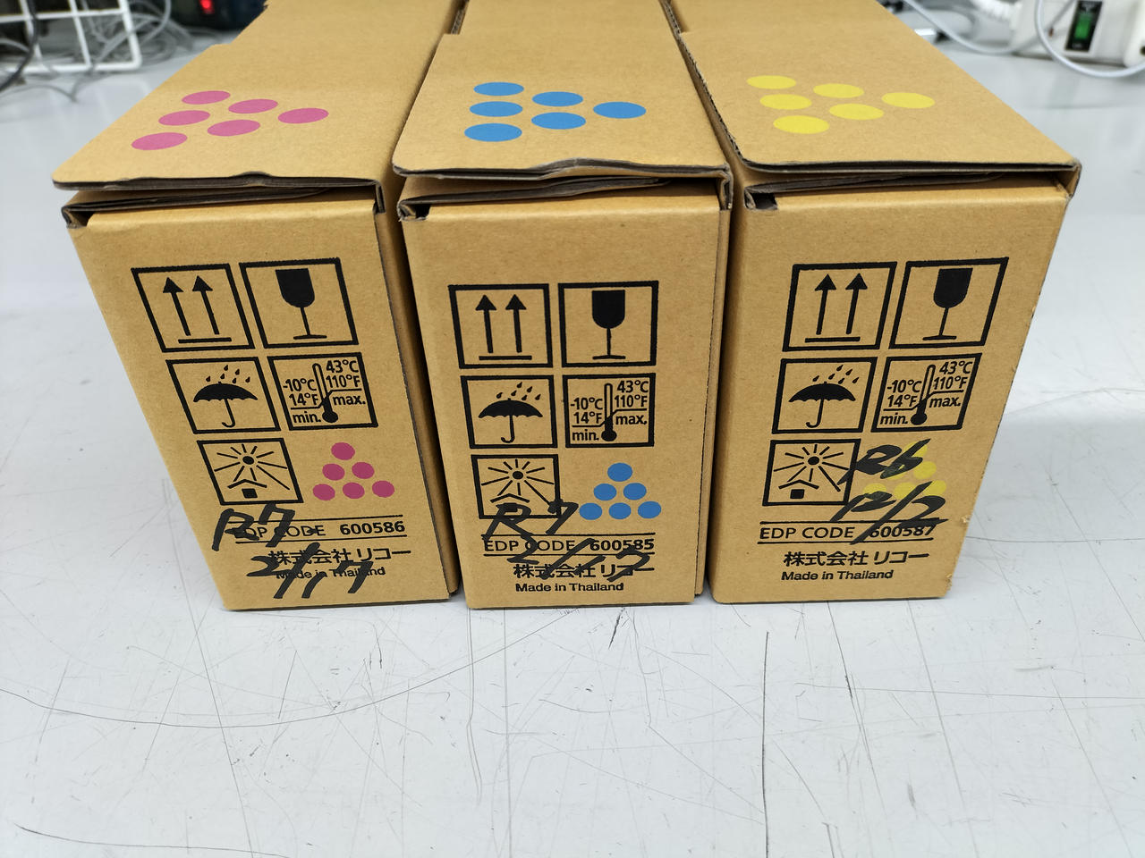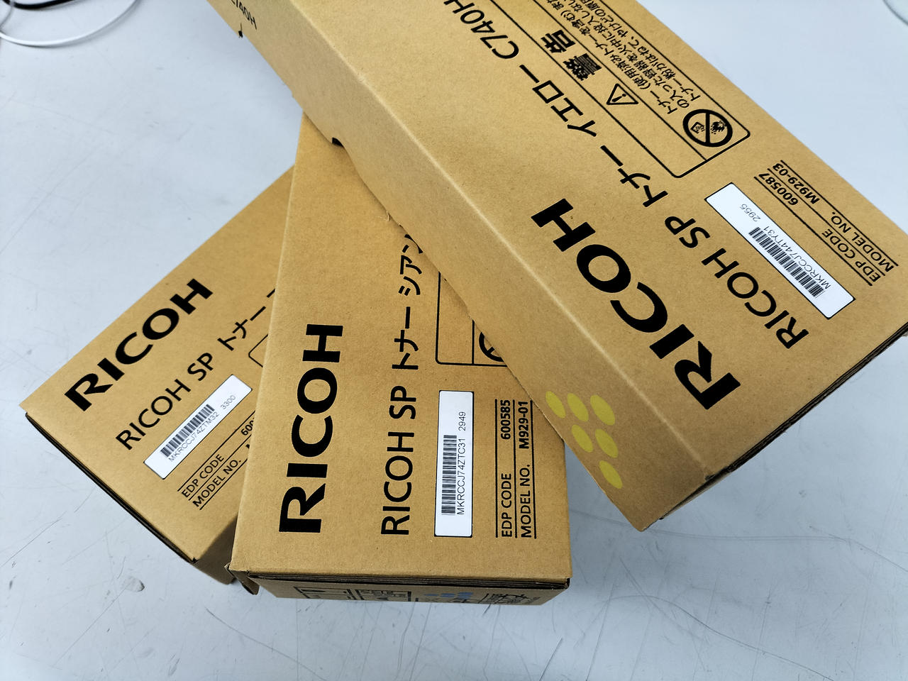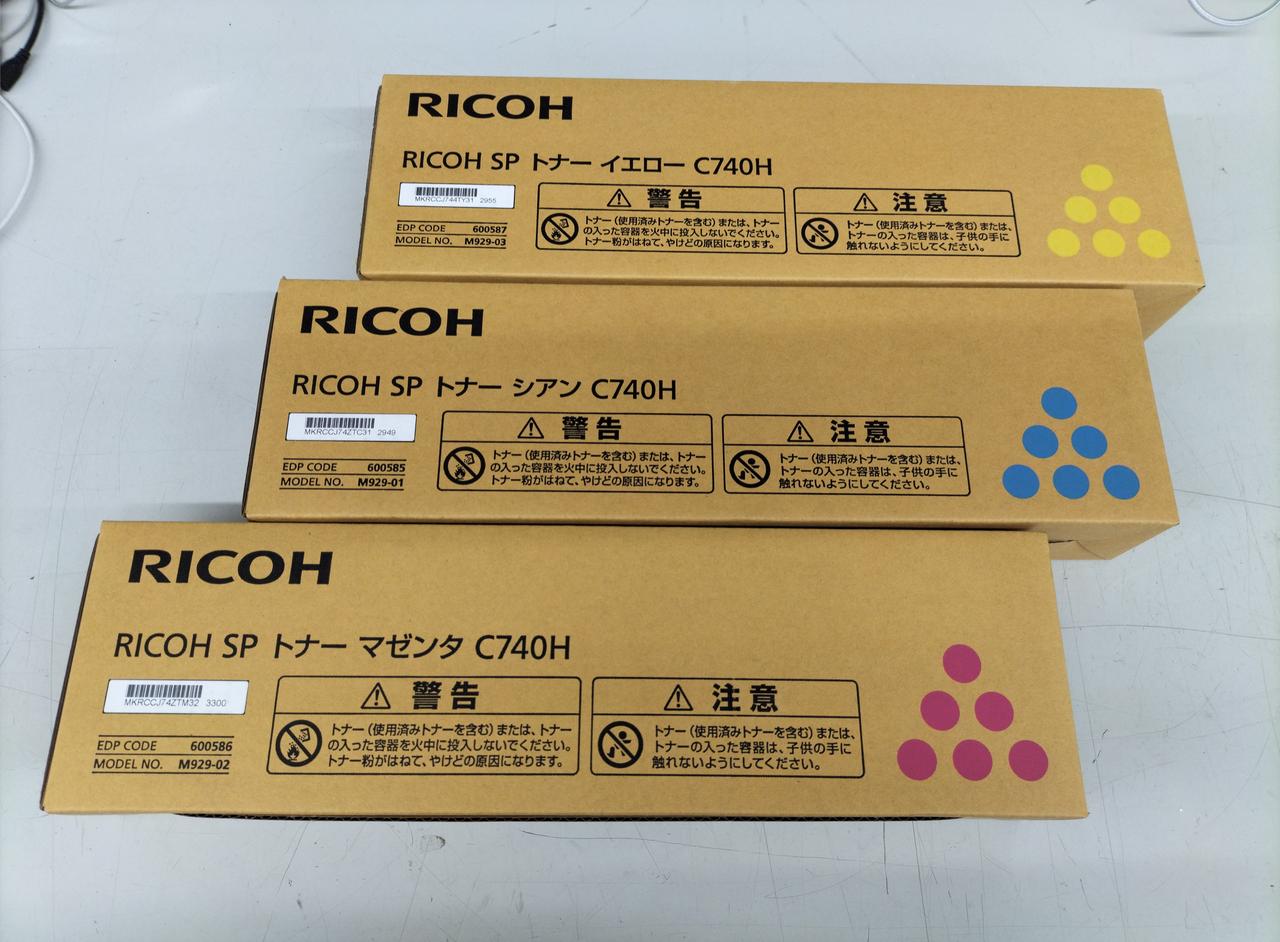 RICOH SP トナーのシアン、イエロー、マゼンタの3色セットです。 |