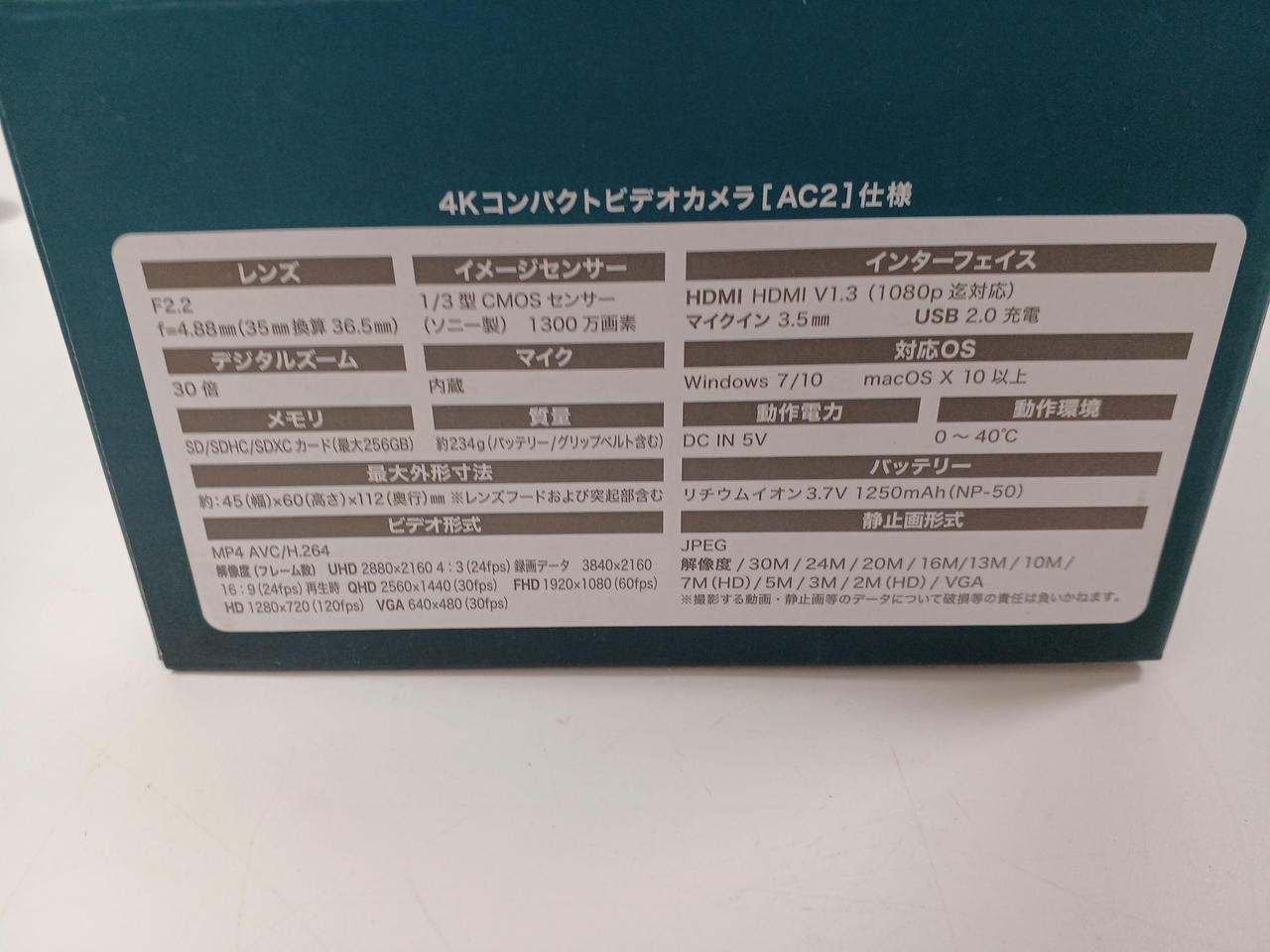 チェック時、撮影出来ましたが動画再生が止まったままです/開閉部分ゆるいです電源ケーブル・ACアダプター欠品バッテリーパック×2・接続ケーブル・説明書(破れ箇所)・SDカード(32GB)化粧箱付き