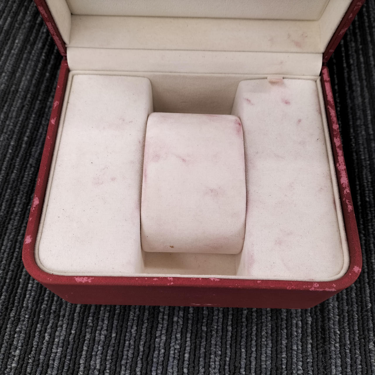 本体キズ有ります。赤箱ボロボロです。置いた場所に赤いの移ります。 |