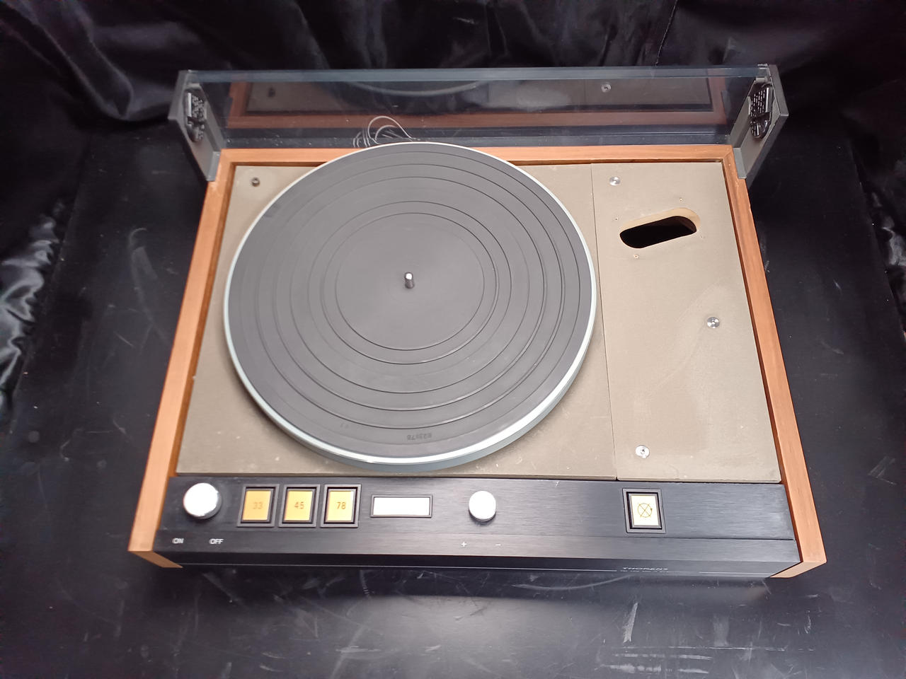 ■THORENSの代表的モデルTD126の後期モデルMkIII■亜鉛アルミダイキャスト&ベルトドライブ&フローティングと制震性に優れた再生力です。■比較的コンパクトな筐体と使い勝手の良さ、音質面とのバランスの良さはこのモデルならでは♪ ※50Hz仕様となりますので60Hz環境下でのご使用に際してはダイヤルを用いてのピッチ調整が必要となります