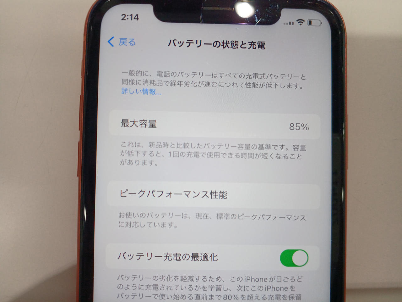 バッテリー最大容量:85% |