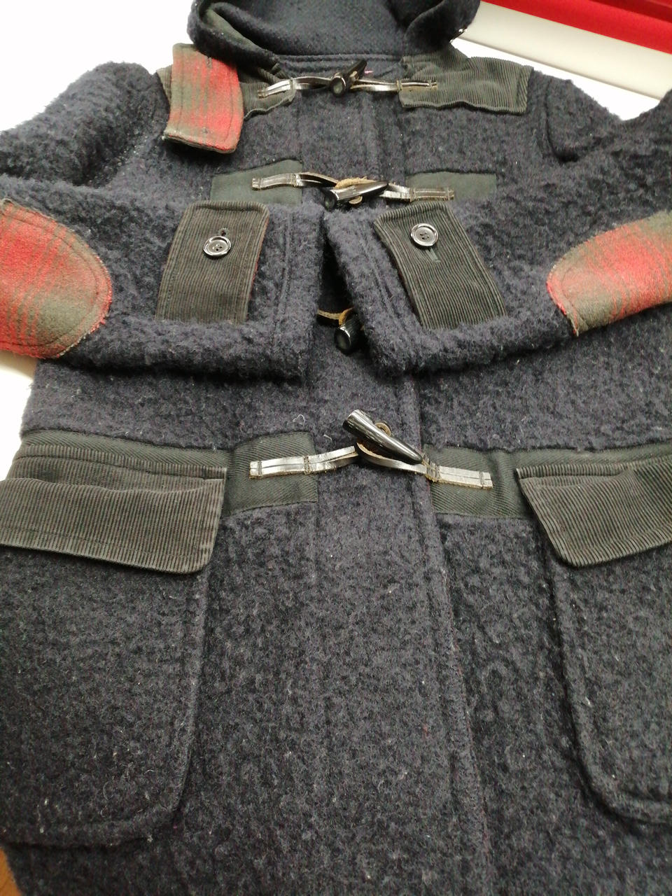 JUNYA WATANABE COMMEDESGARCONS MAN 起毛ウールダッフルコートでございます。全体的に毛羽立ち、毛玉などの使用感がございます。中古品ですので画像をよくご参照下さい。使用には問題ございません。 |