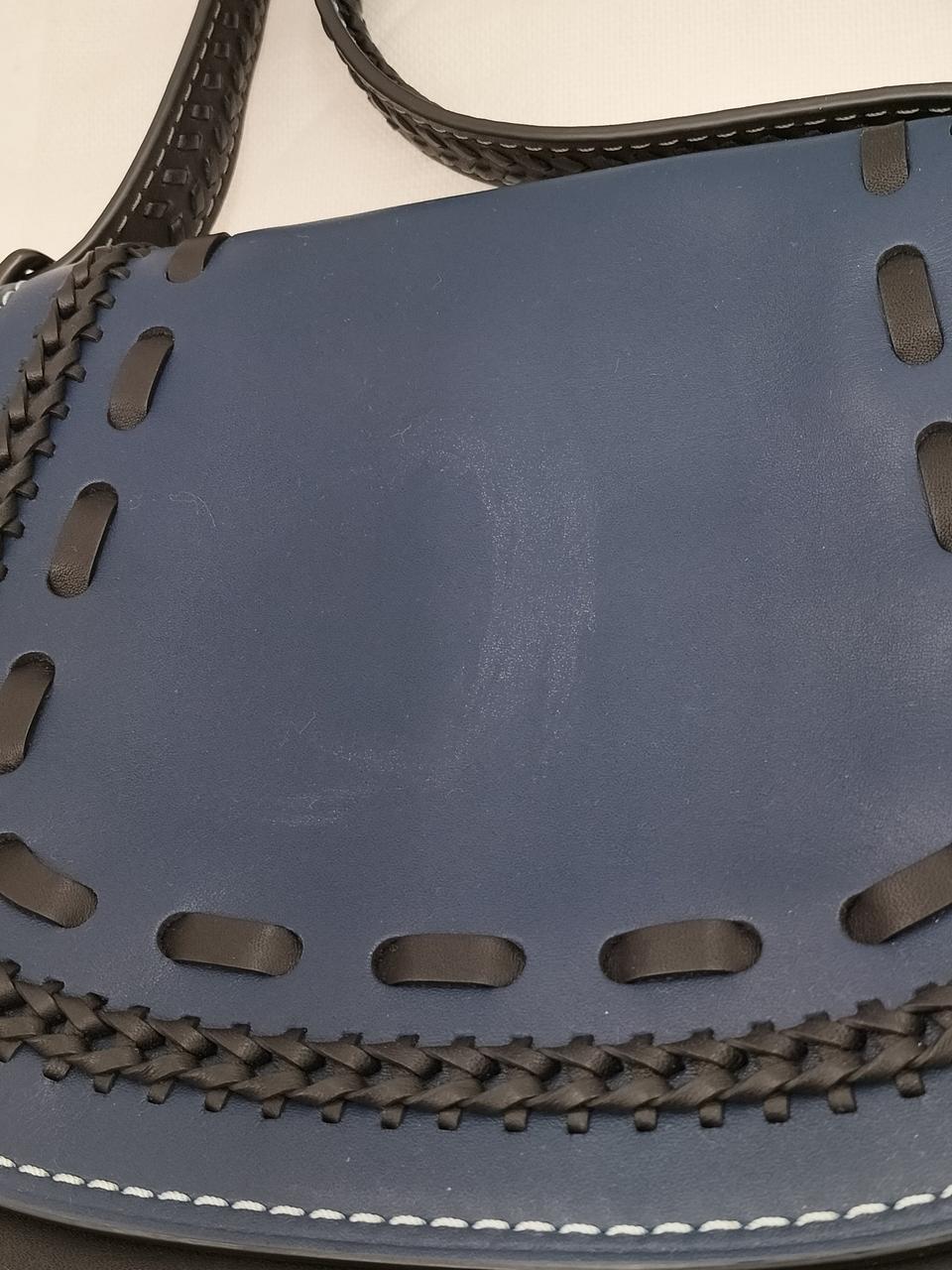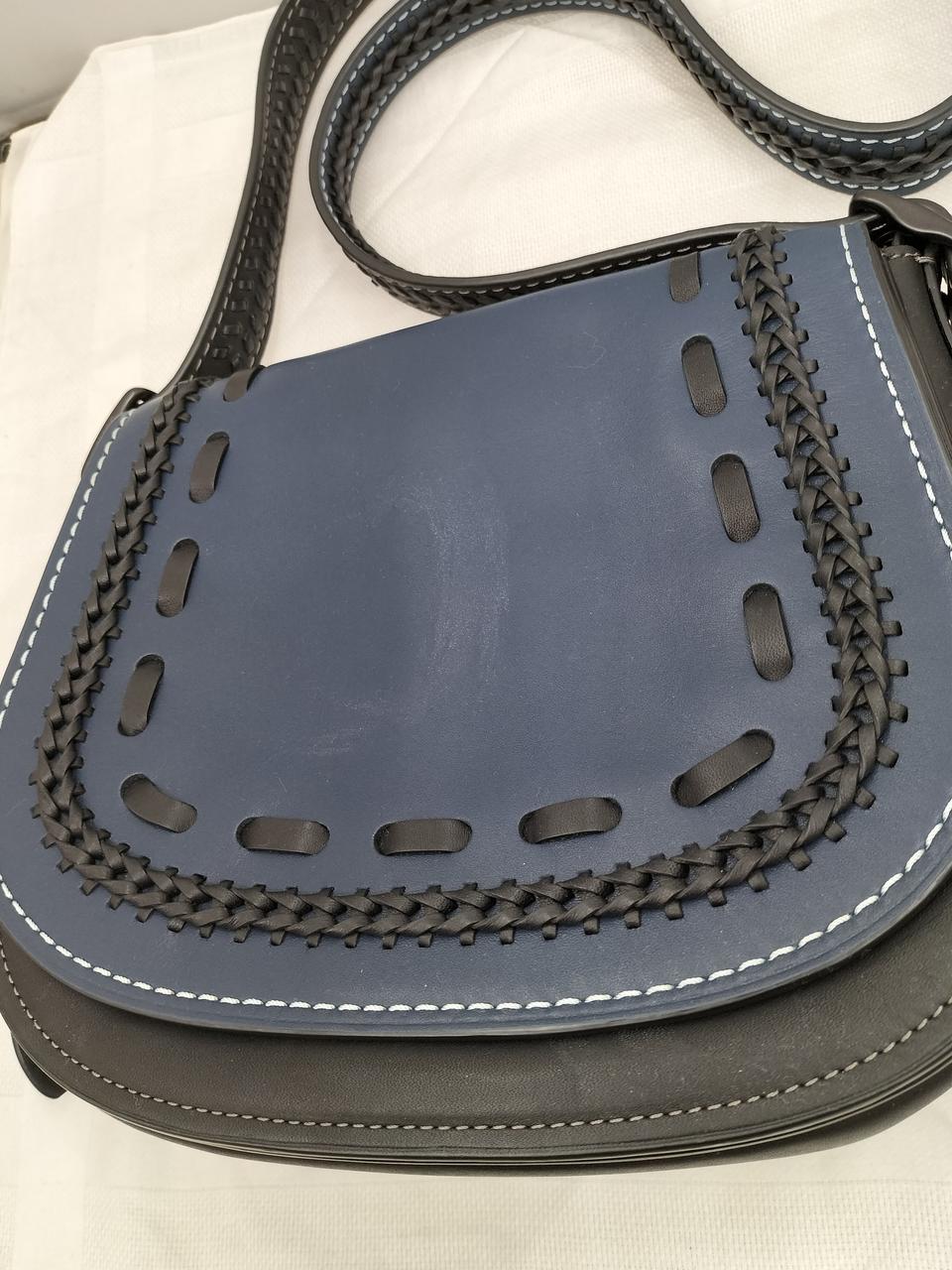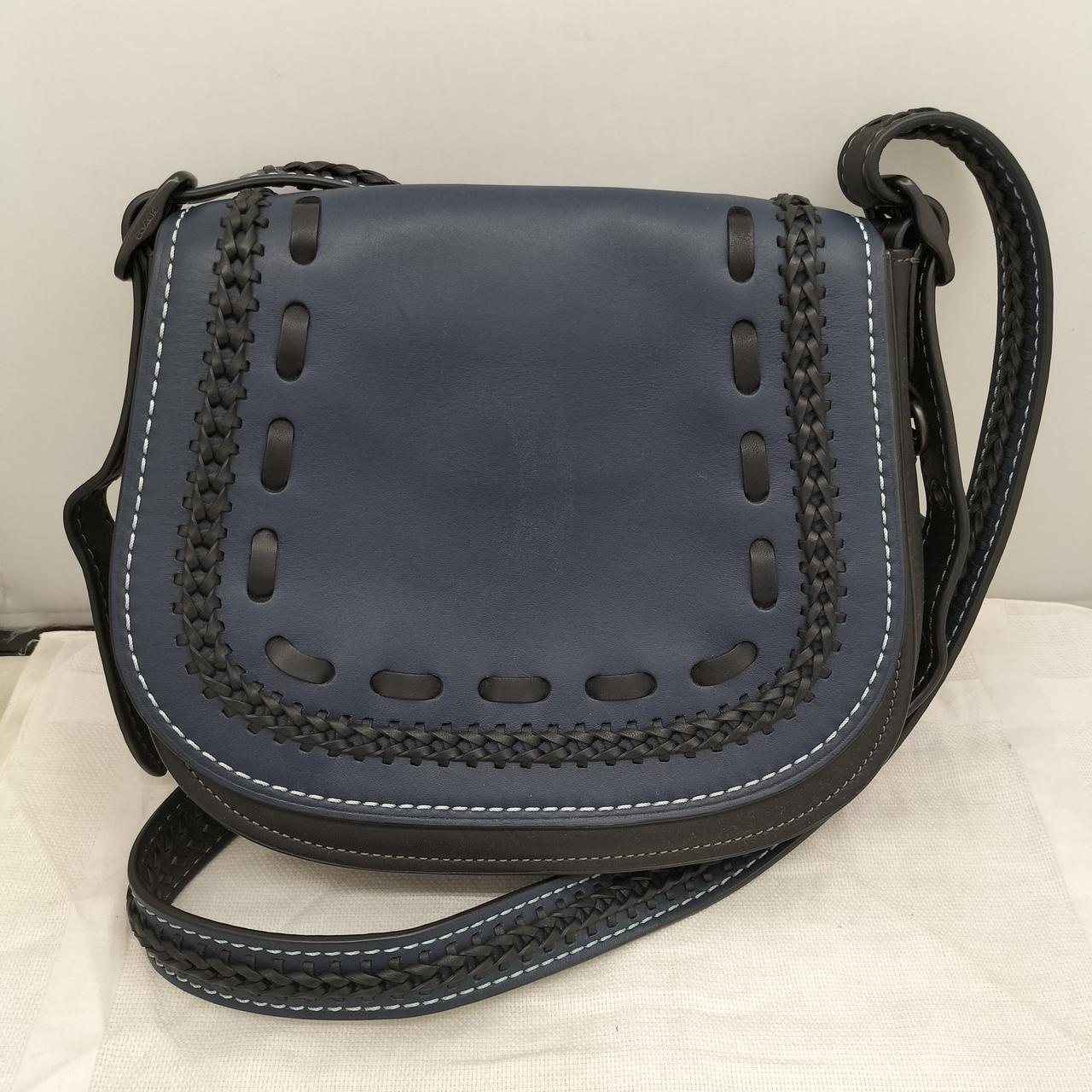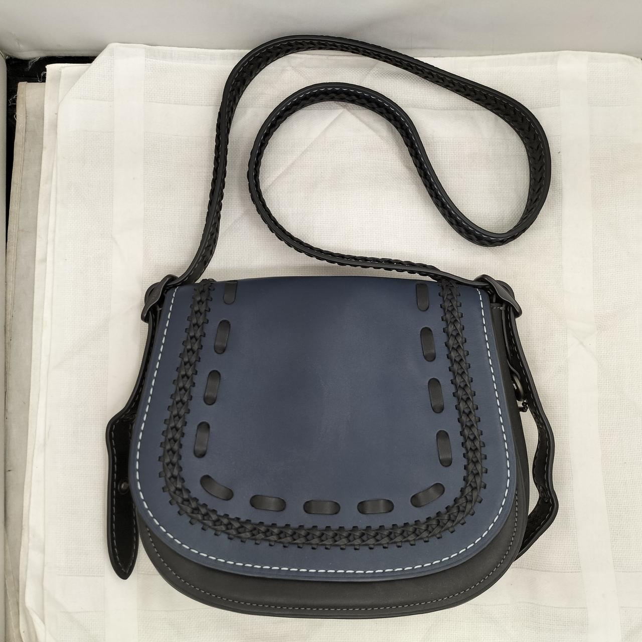 ダークブルーにブラックの編み上げが可愛いデザインのバッグです♪
