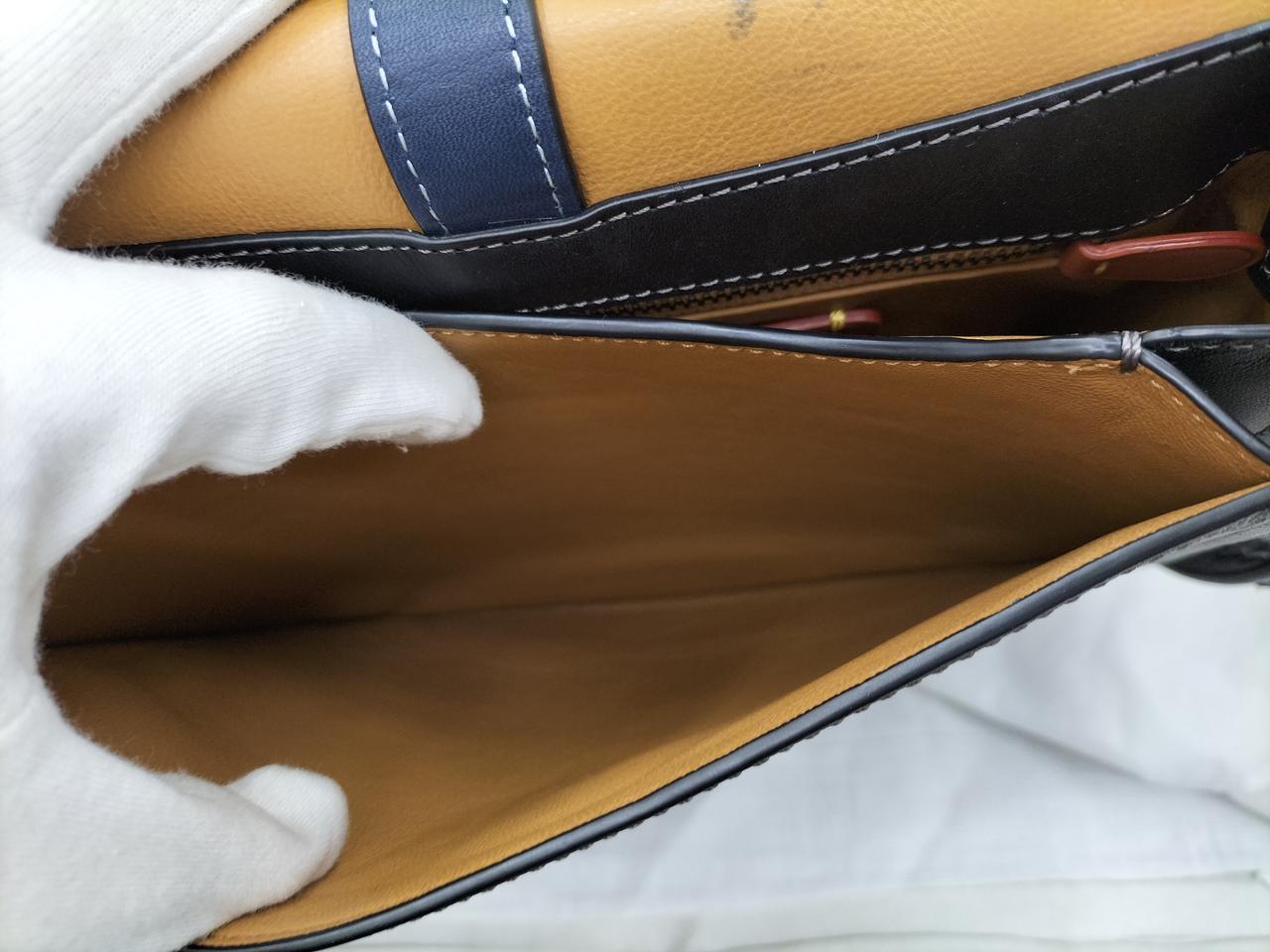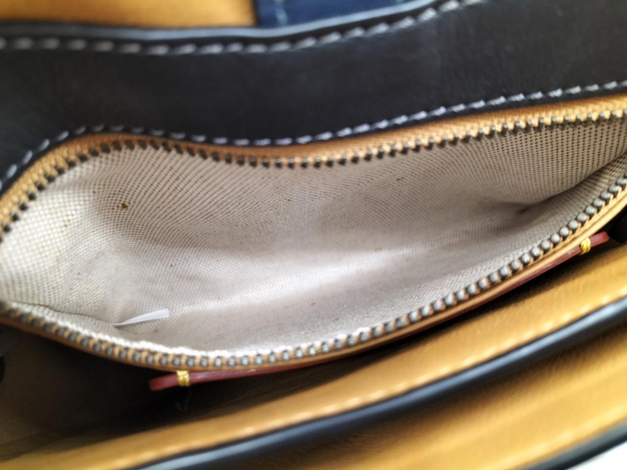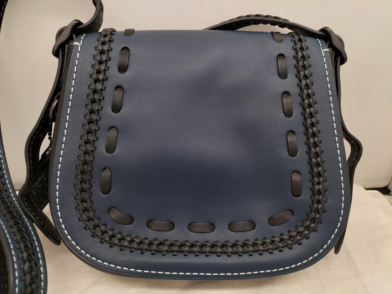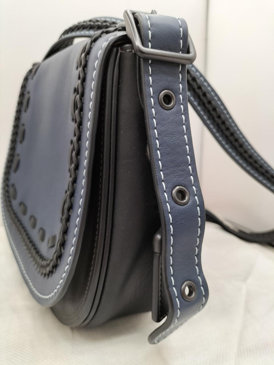 ダークブルーにブラックの編み上げが可愛いデザインのバッグです♪