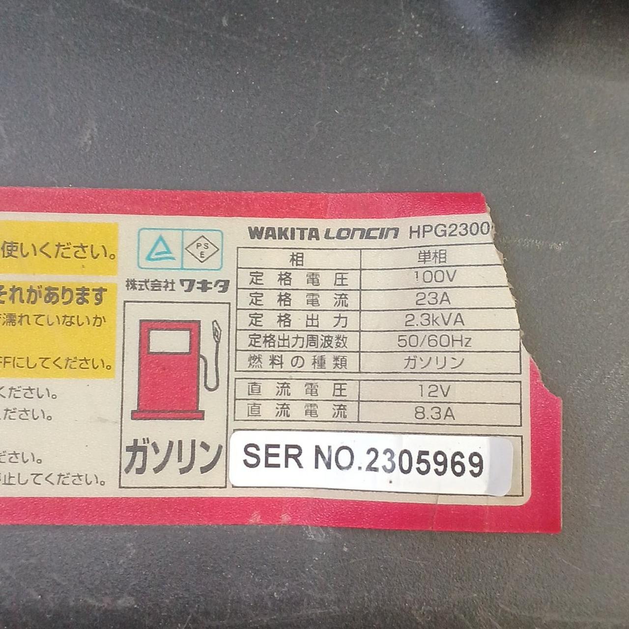 2300W 燃料の種類:無鉛ガソリン 燃料タンク容量 4L |